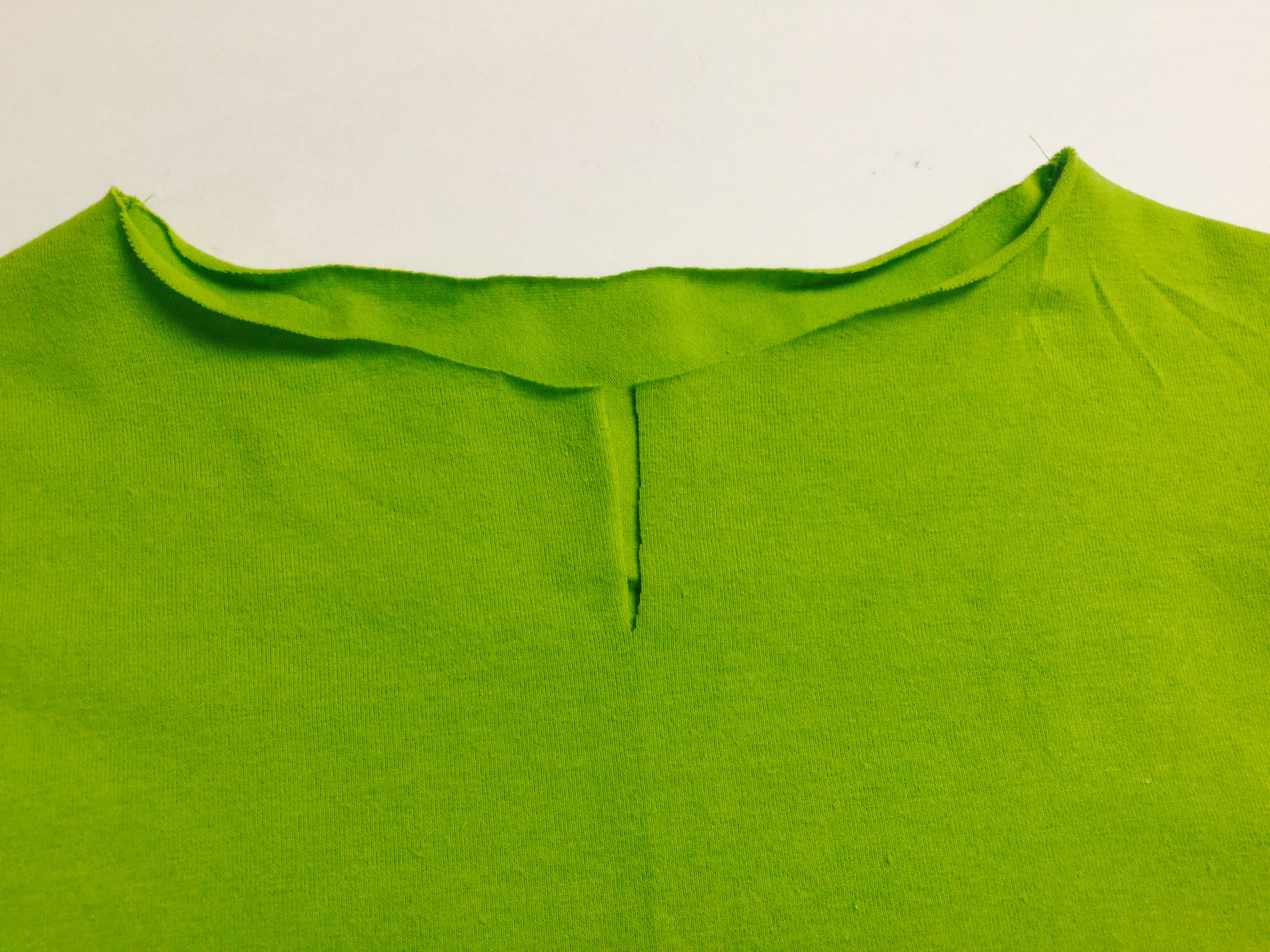 6. cut a slit along the center front of the front of your shirt.