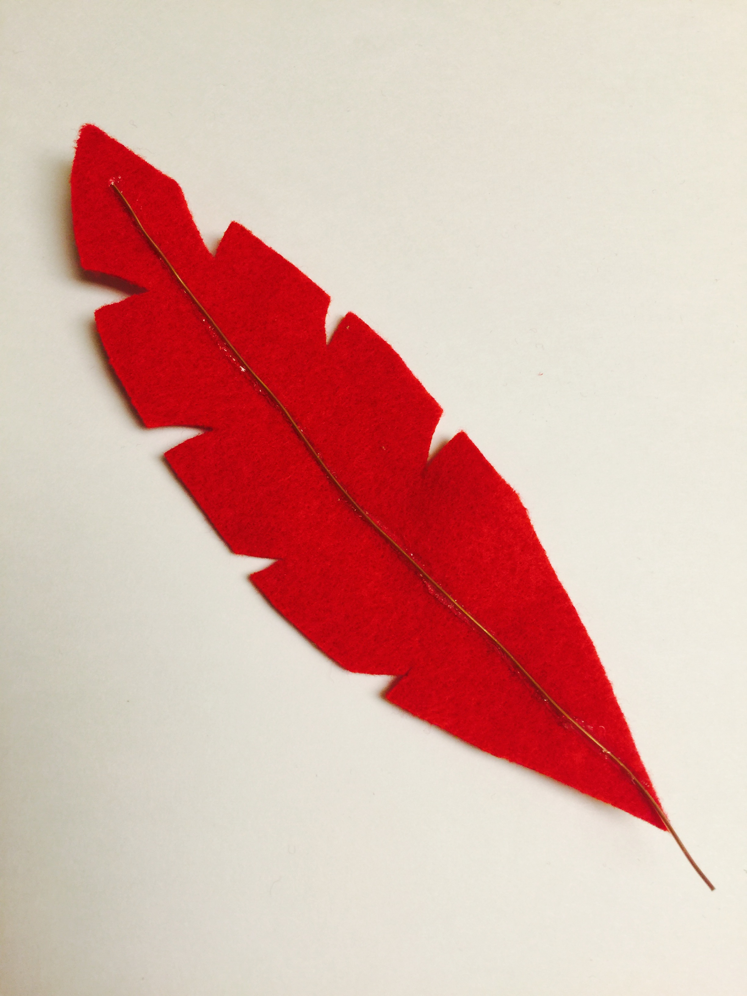 5. Using a hot glue gun and a thin wire, glue the wire to the middle of the feather.