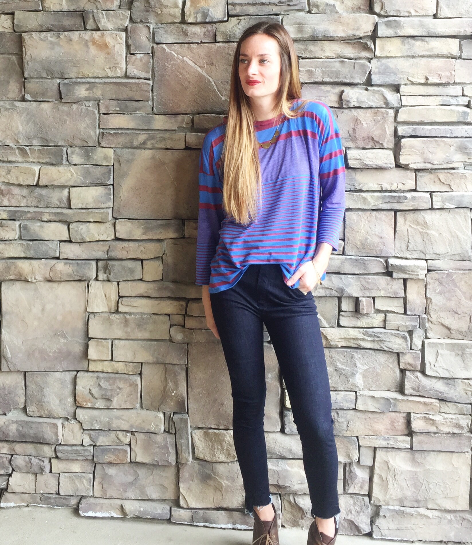 I really love this top! It’s something I know I’m going to get a lot of use out of this fall/winter. I’m always looking for easy things to throw on with jeans when running out for the day with my kids, and this is one of them. I think I need to make a few more… Enjoy!