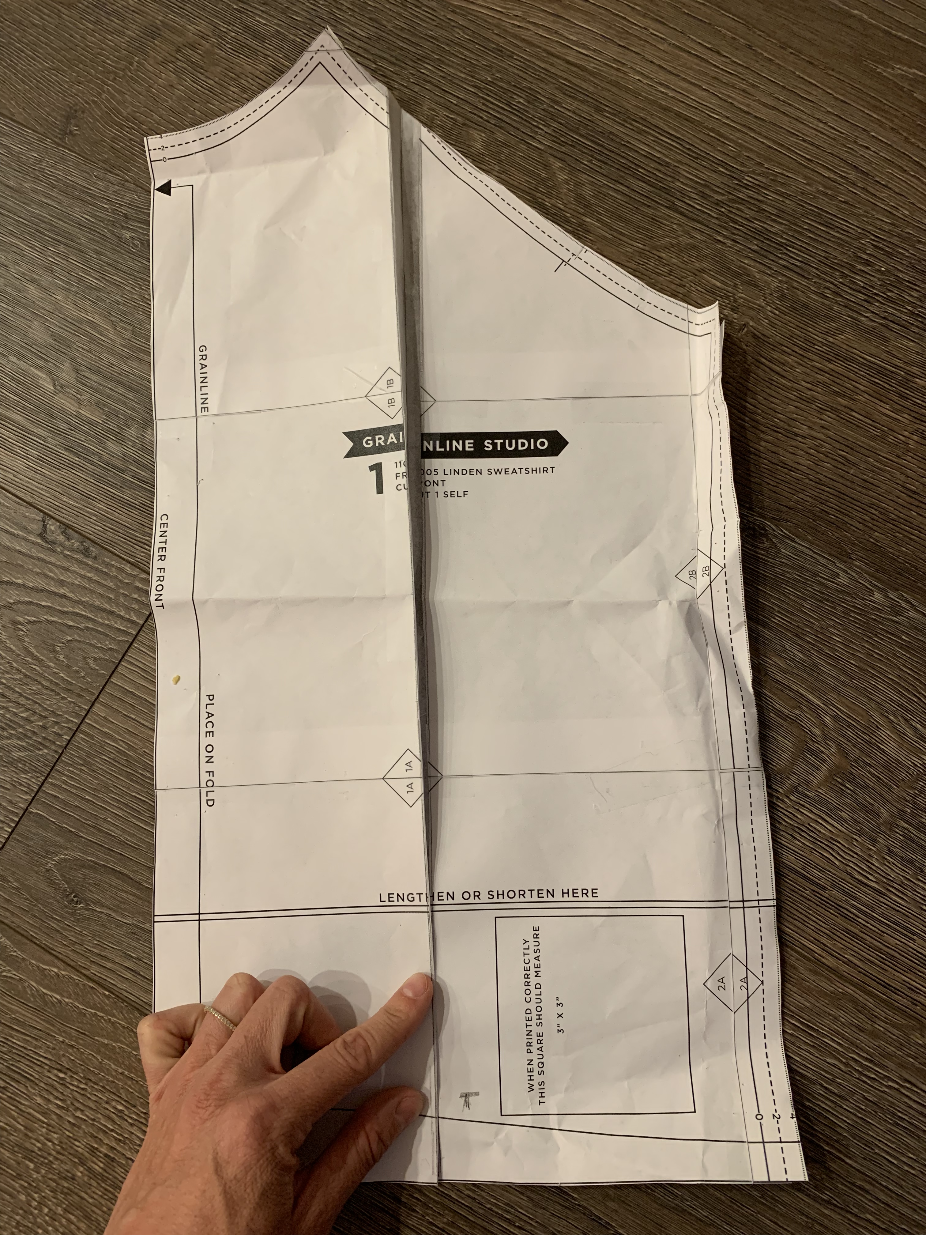 - Cut the front sweatshirt bodice in half, I used the line that goes through the center of the pattern.