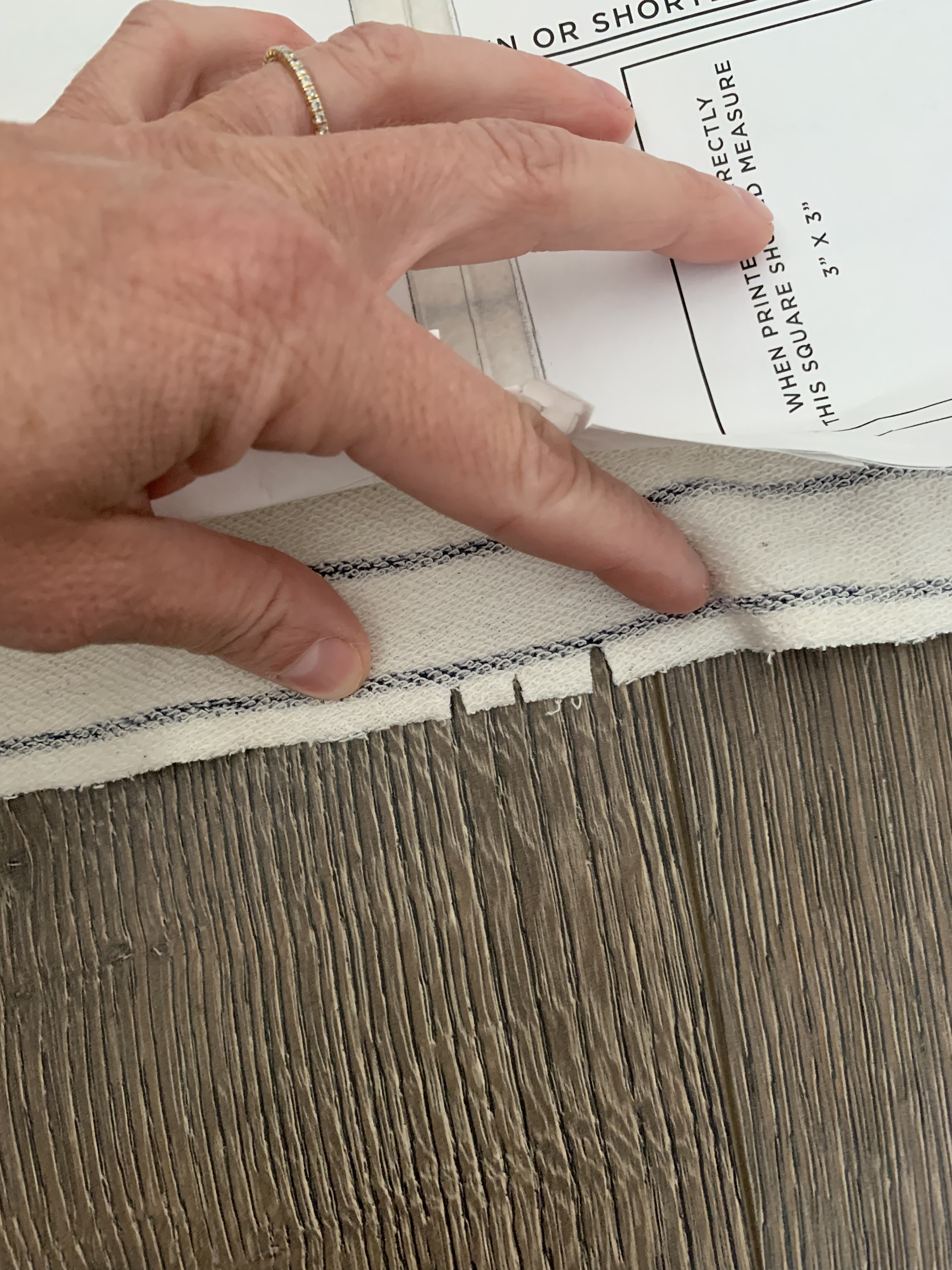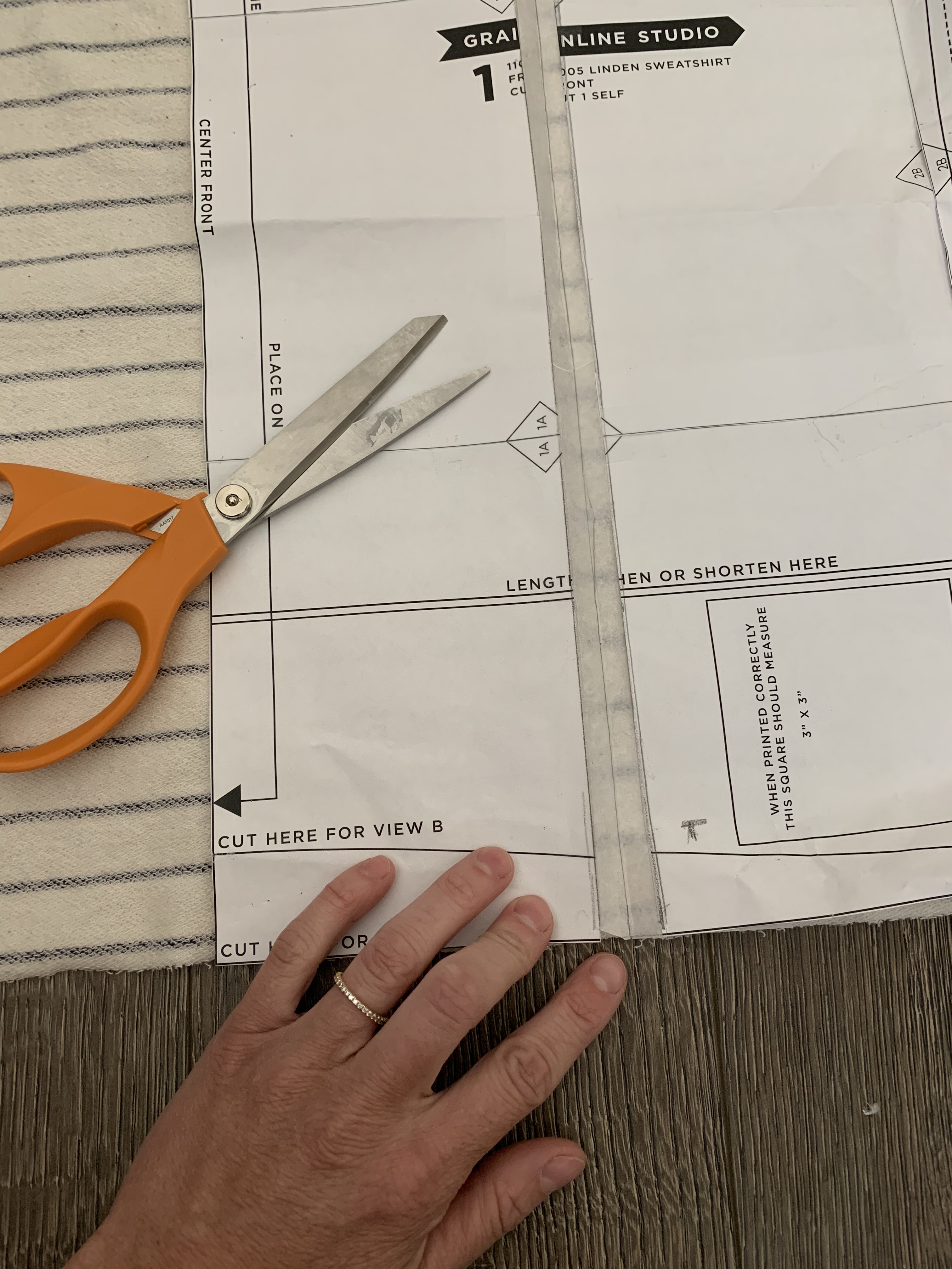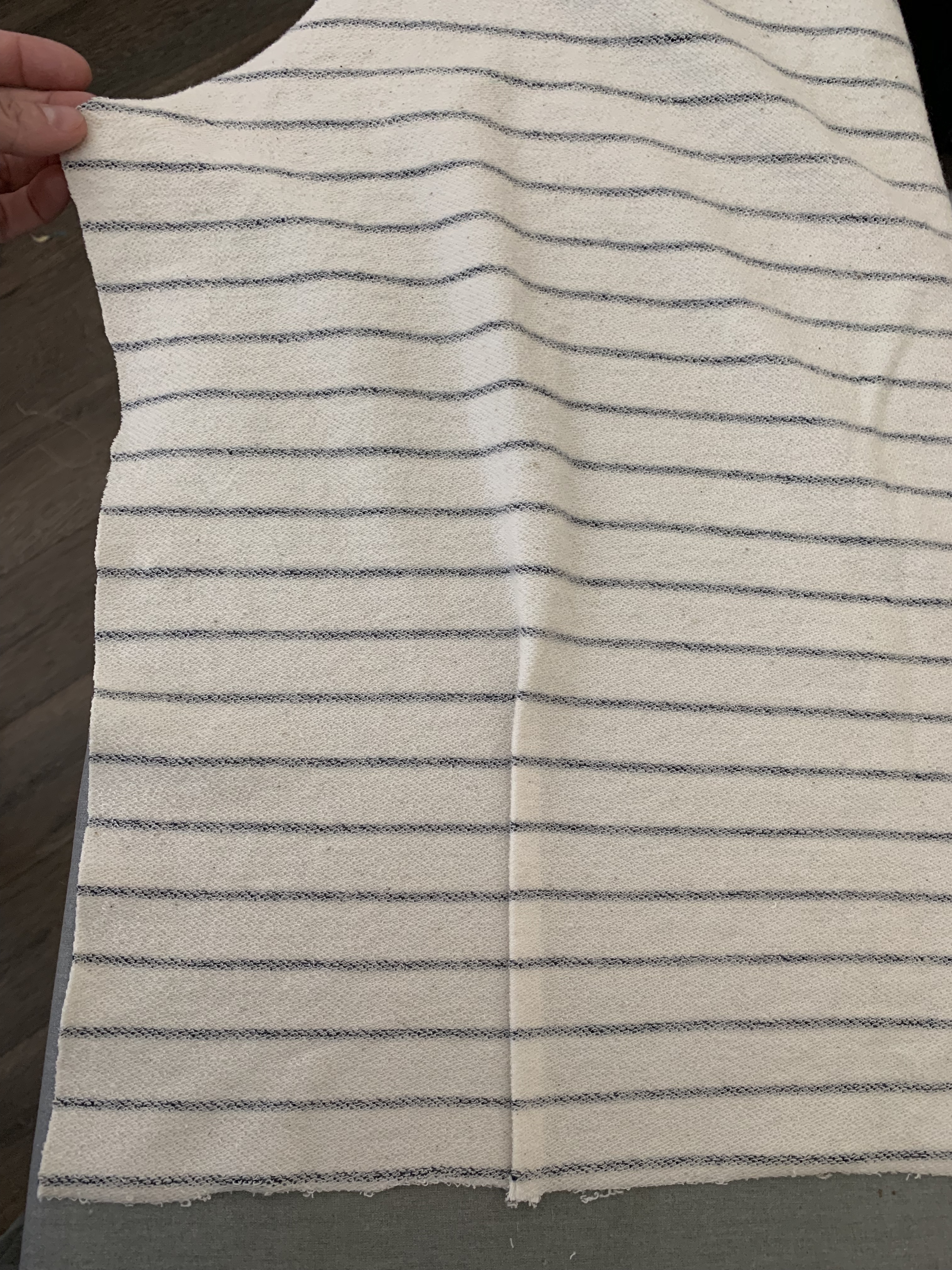 I cut all of the pant pieces against the grain line of the fabric so the stripes on my pants would be vertical directionally.