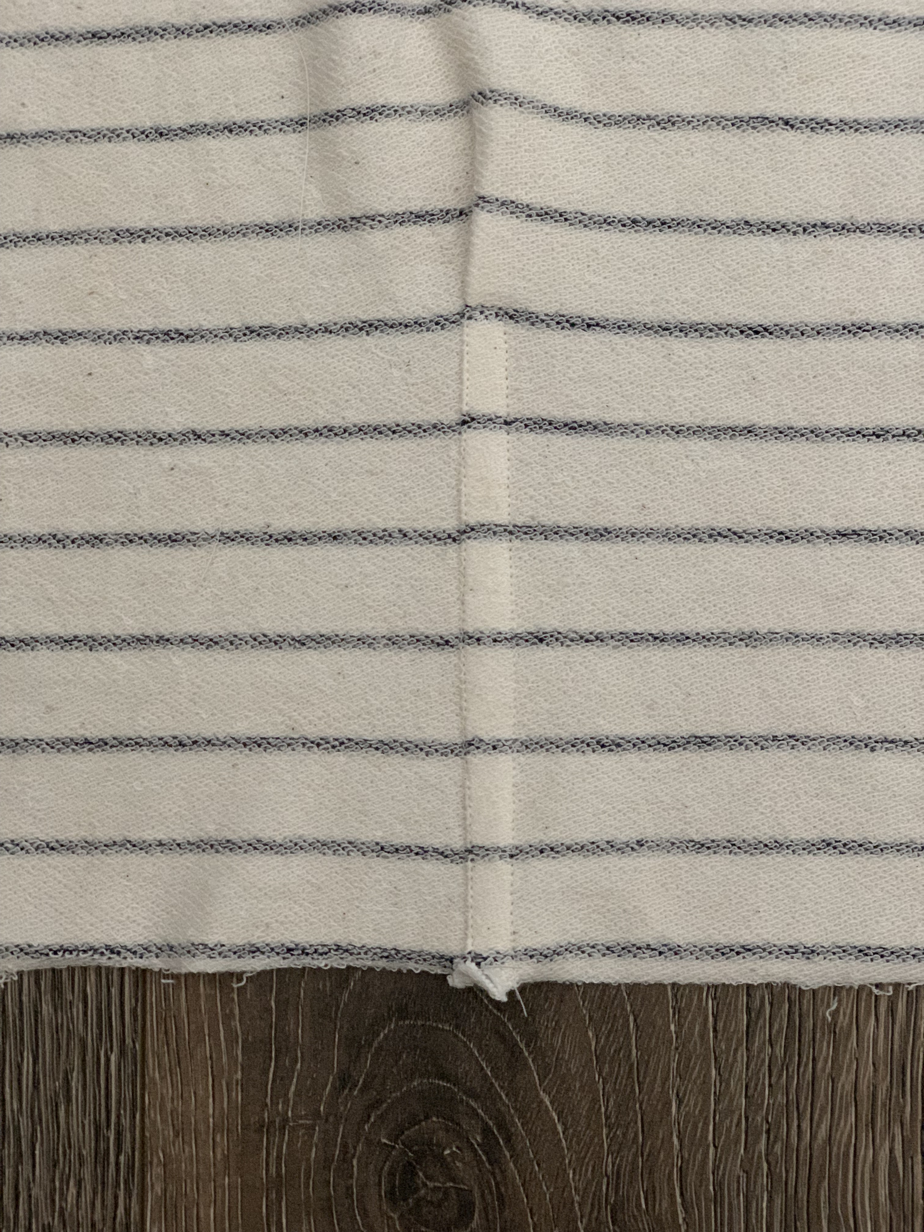 6. To sew the pleats, fold the pleat in half towards the side seam, matching the notches and iron in place. If you are using horizontal stripes, make sure to match them up.