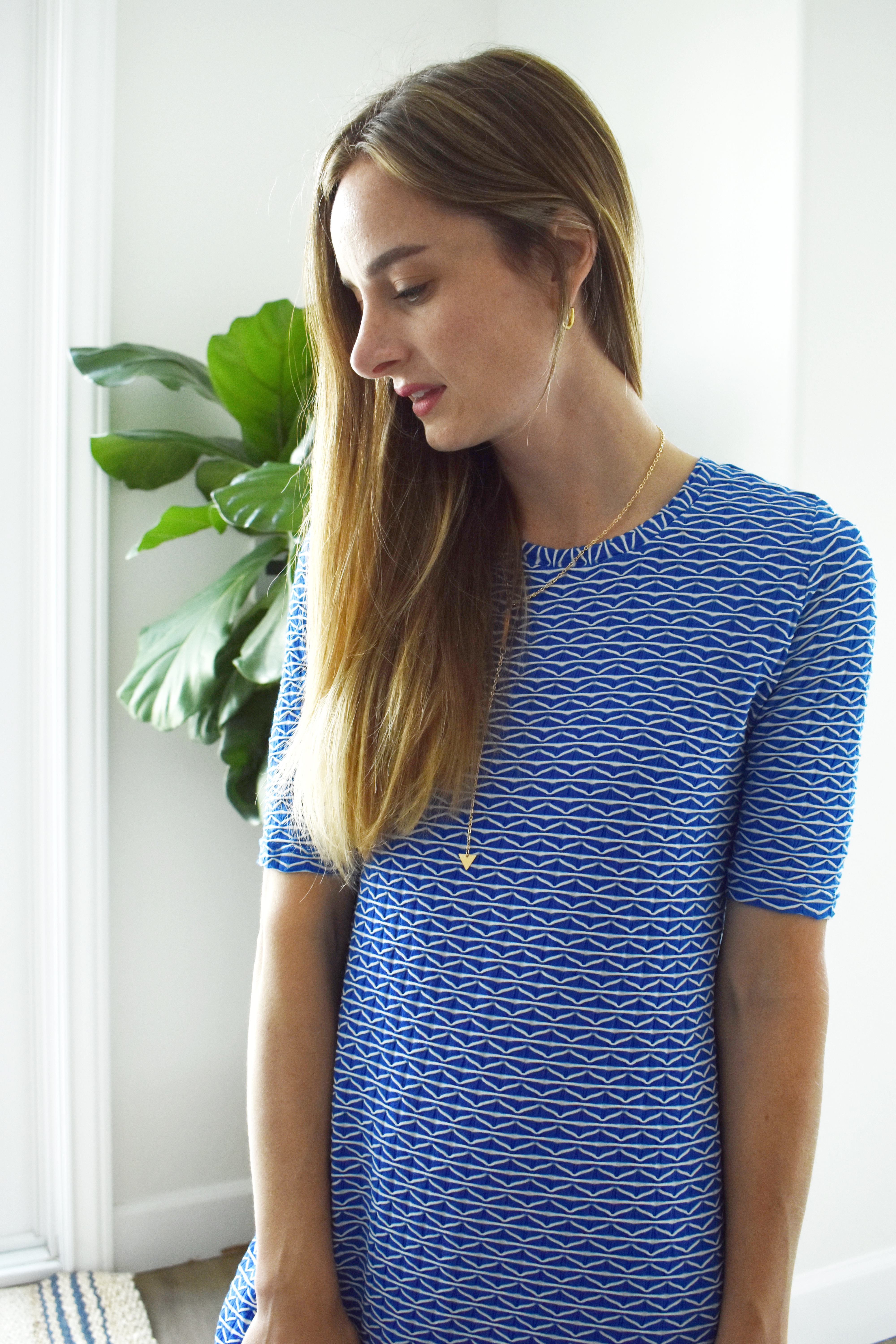 Say hello to my summer staple dress. The moment I laid eyes on this fun Melody Knit fabric from Telio, I instantly pictured the Panama Tee Dress by Aline Design Co. I love the zig zag pattern and also texture of this fabric. It comes in so many great colors too, but this royal blue screamed summer and there was no going back.