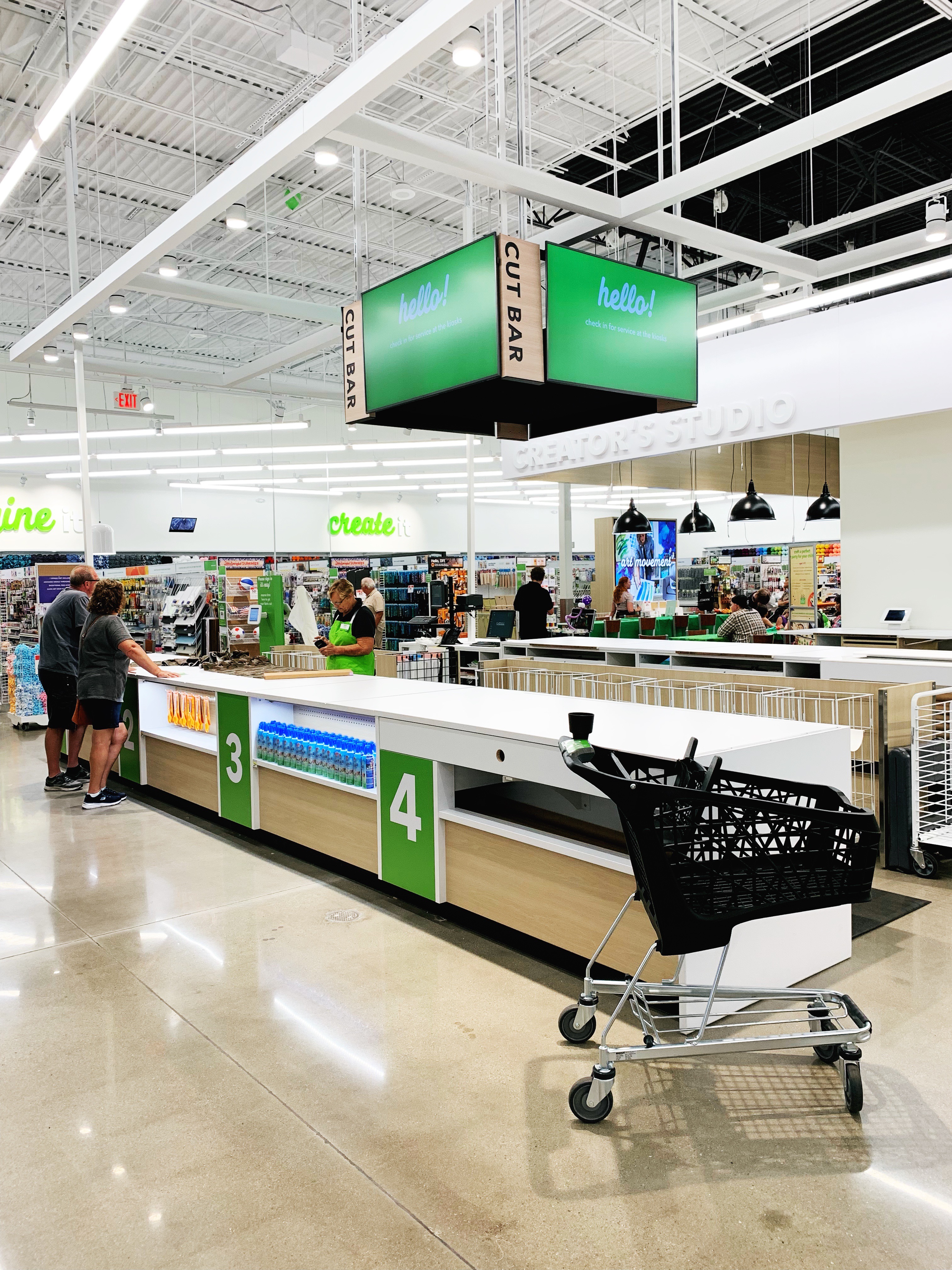 Is this the most beautiful cut bar you ever did see? It’s so sleek! Check out the updated shopping carts, too! You can also see the new Creator’s Studio in the background.