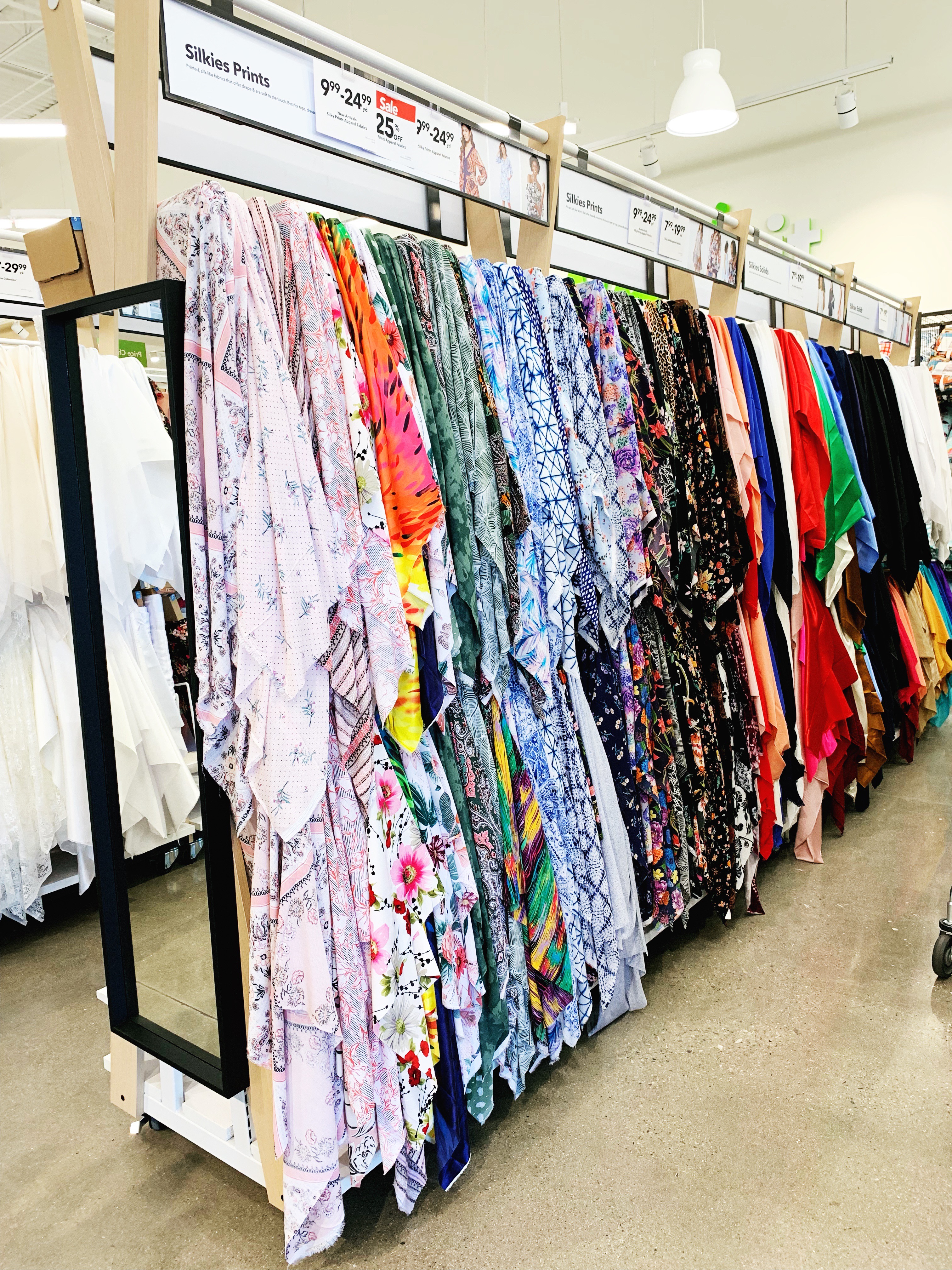 Okay, first let’s talk about this stunning fabric display. Isn’t it so pretty!? I also love that they have added a mirror so you can see how the fabric looks against your skin. Genius! So necessary and helpful.