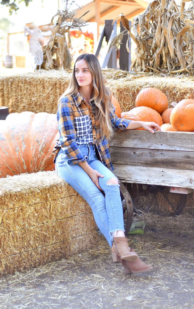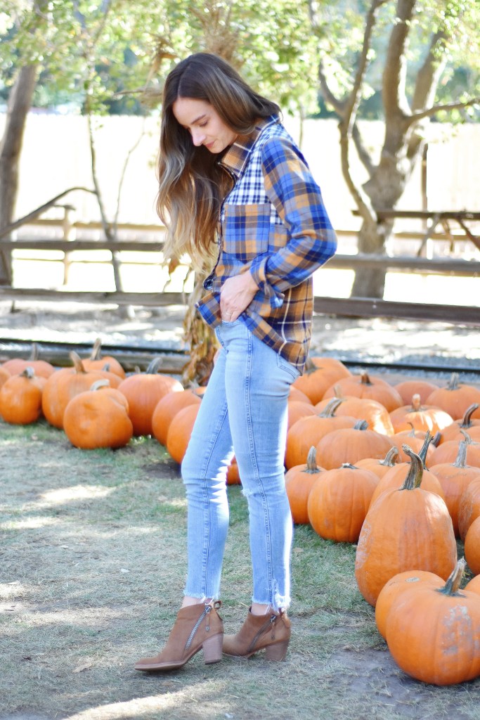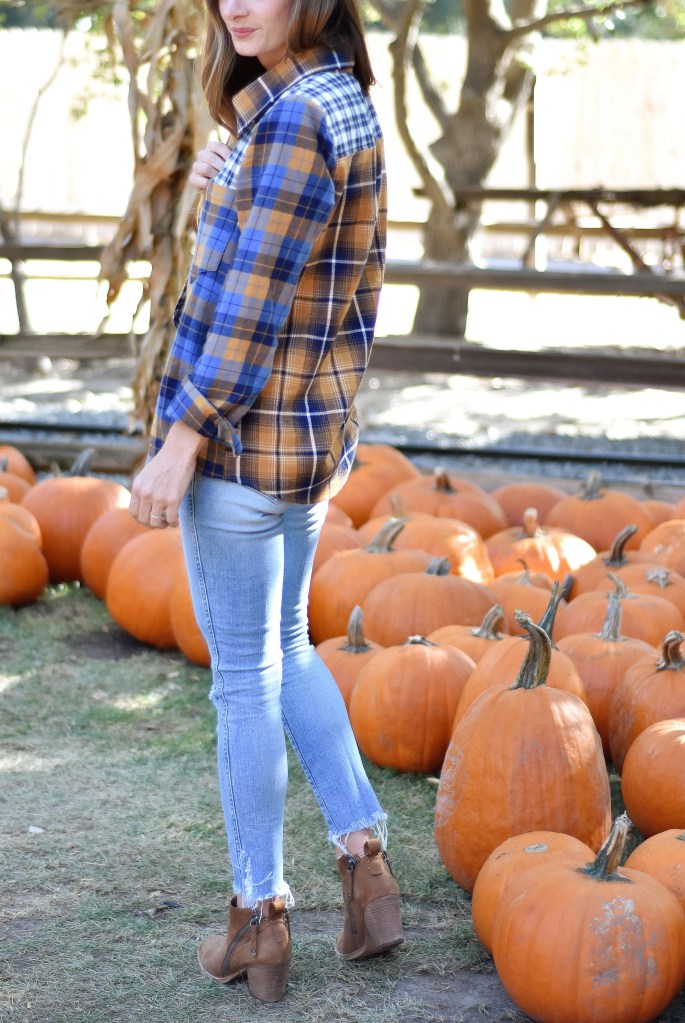 I love this shirt tucked in on one side, or tied up in a knot, too. It would even be cute layered with a t-shirt underneath or a cute jacket on top. I’m telling you, everyone (everywhere) needs a good button up shirt in their fall wardrobe!