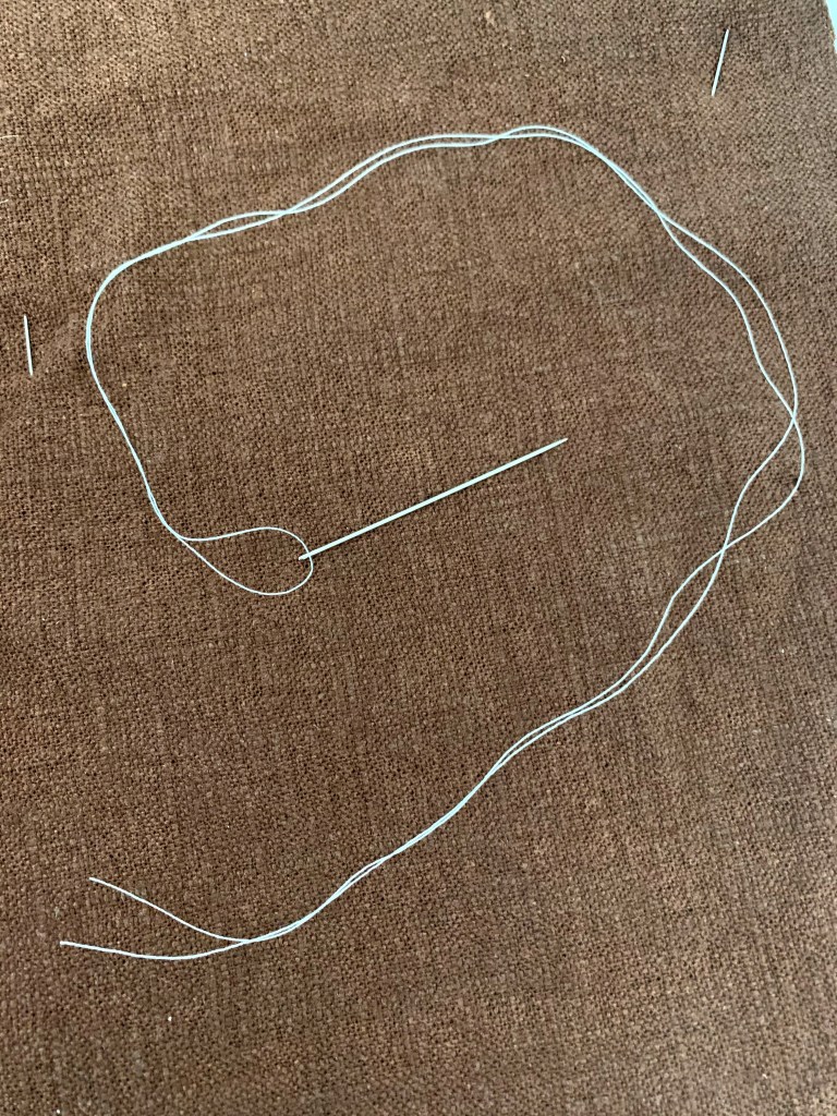 For this method you will need contrasting thread and a sewing needle. Thread the needle and have the thread ends meet, but do not tie a knot at the end.