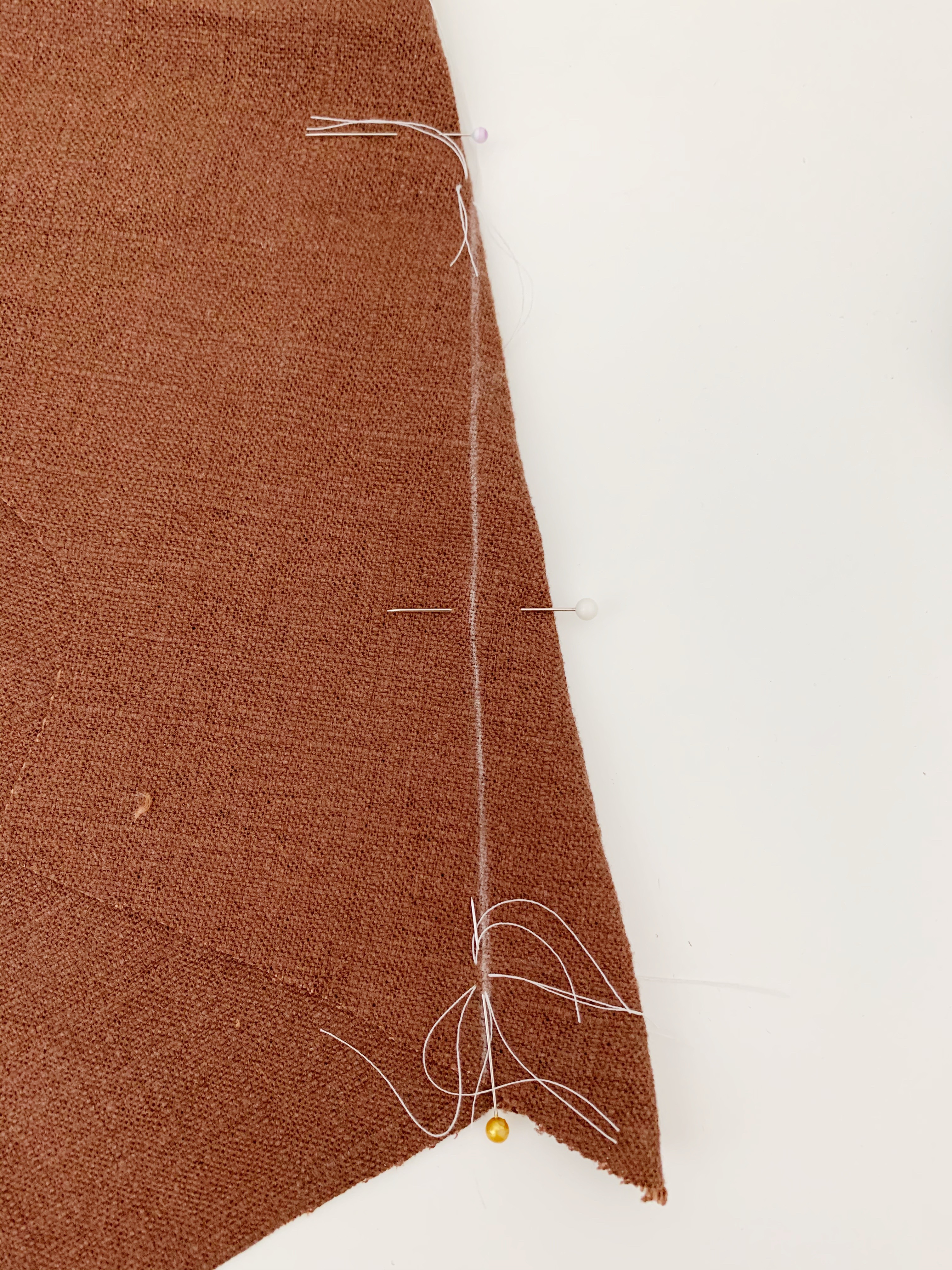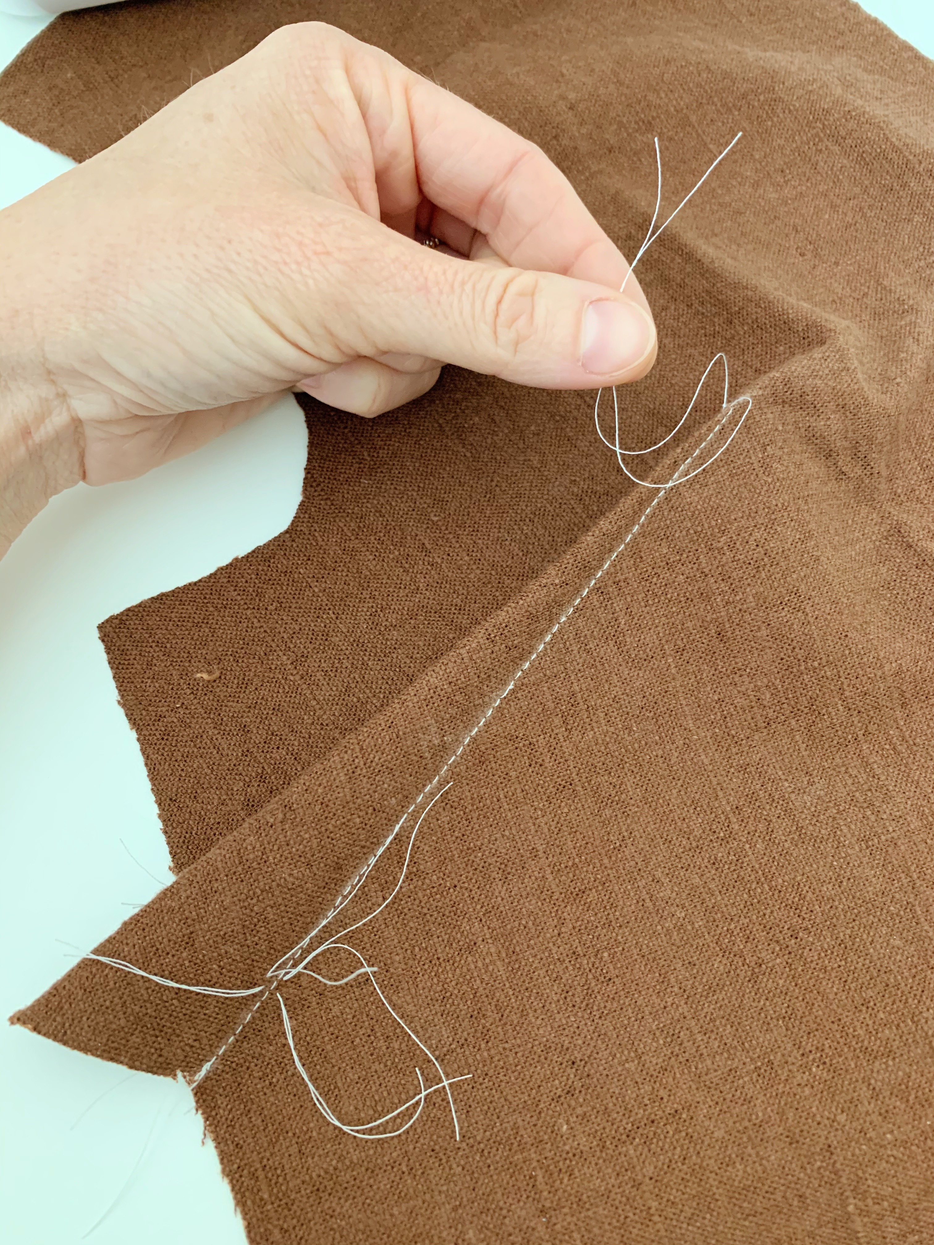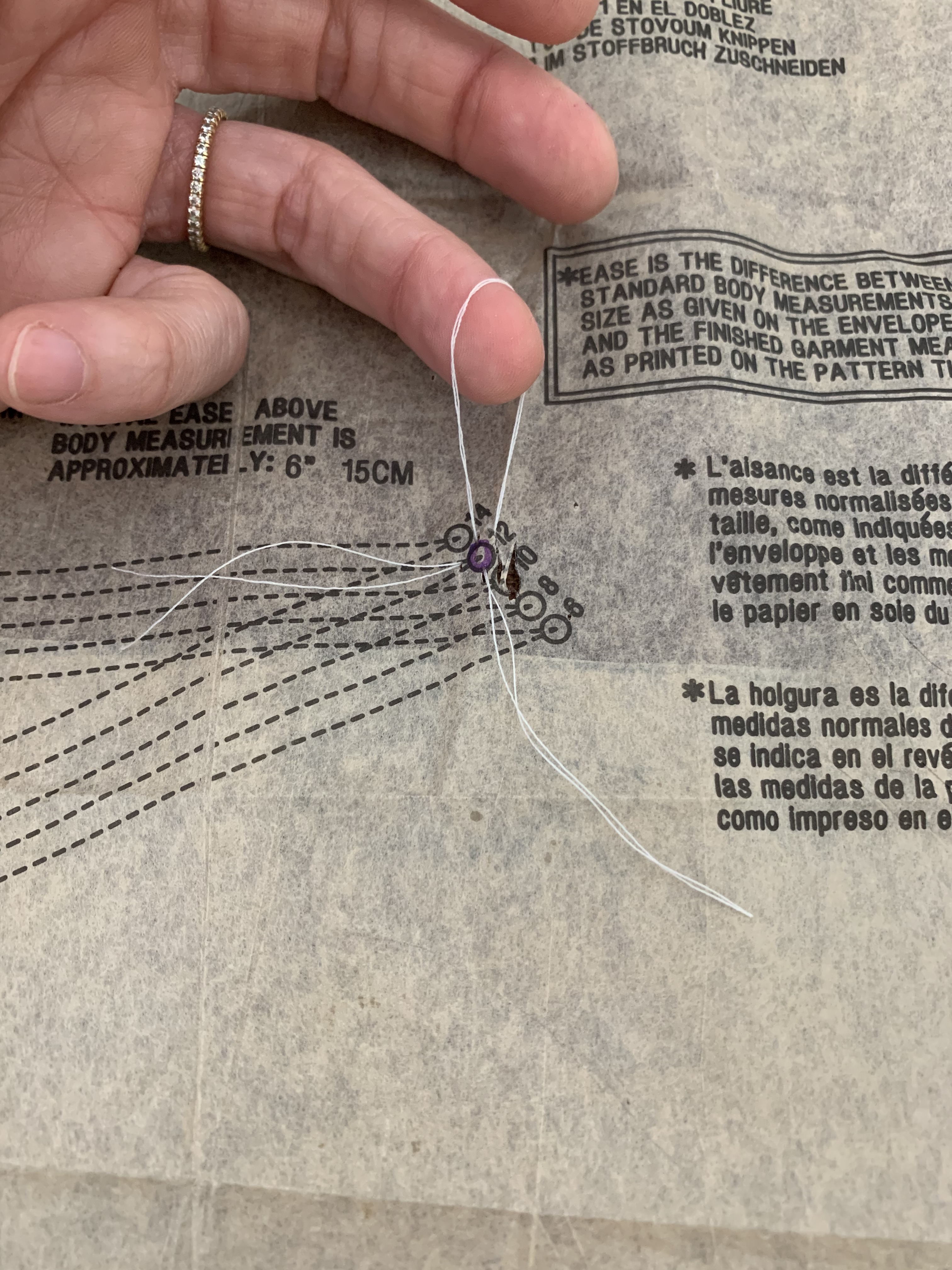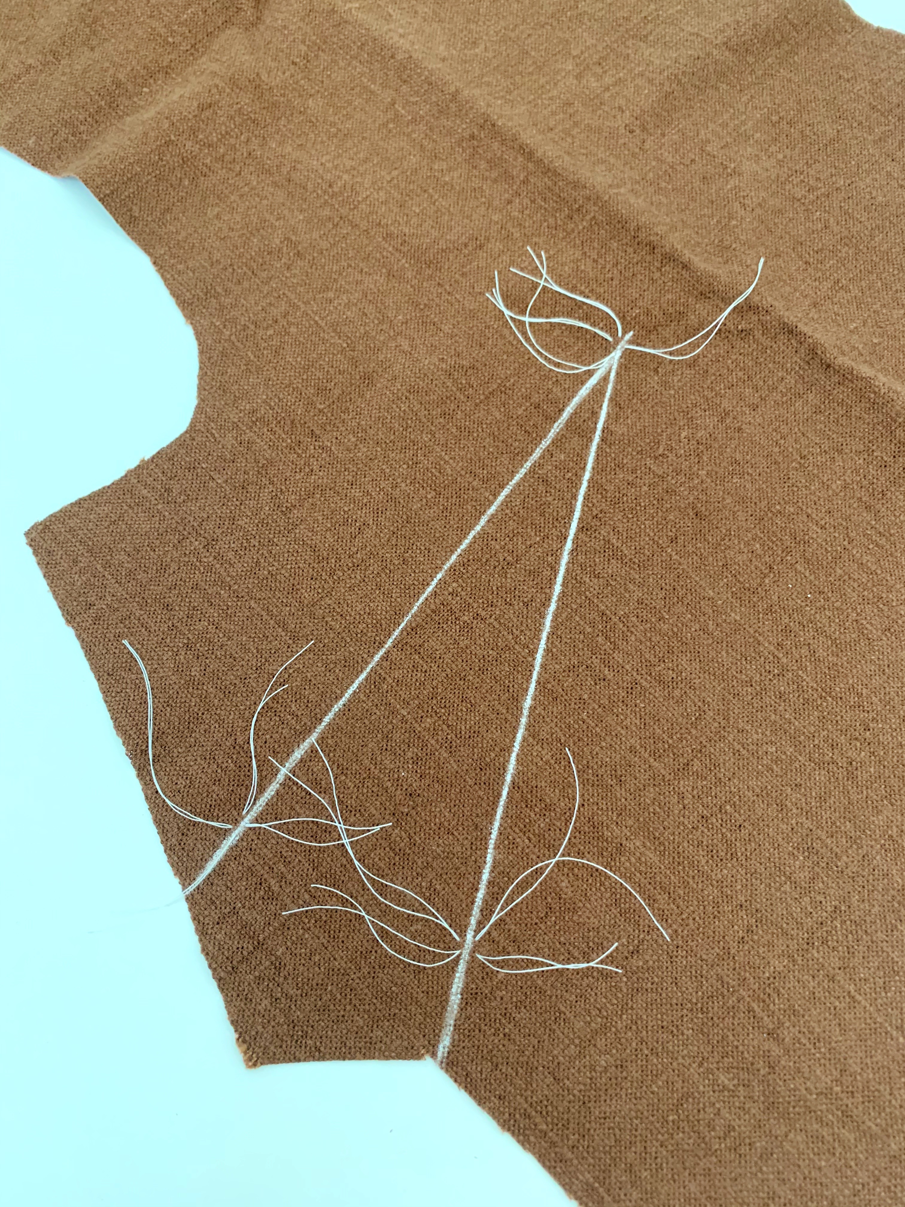 5. Tie a knot by hand using the excess thread tails to finish off the dart. Remove tailor’s tacks.