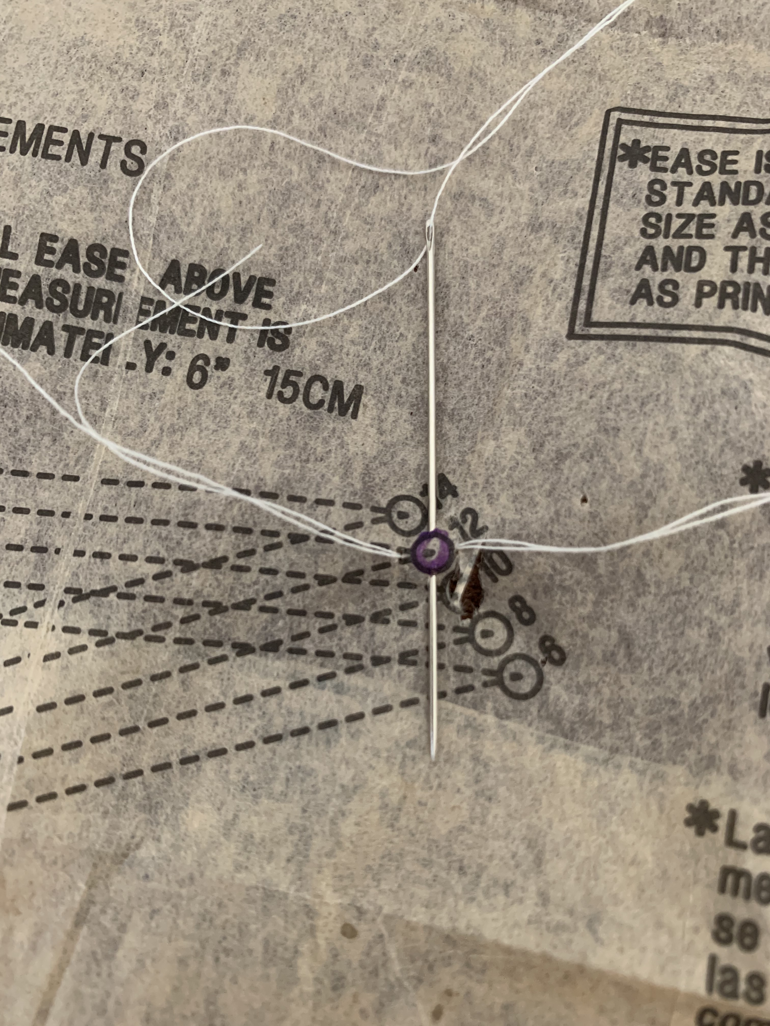 With this method you will need a sewing needle and thread. This is also a great method to use if your fabric is really busy and you’re having a hard time getting the chalk to show up, or for delicate fabrics such as lace, chiffon or embellished fabric.