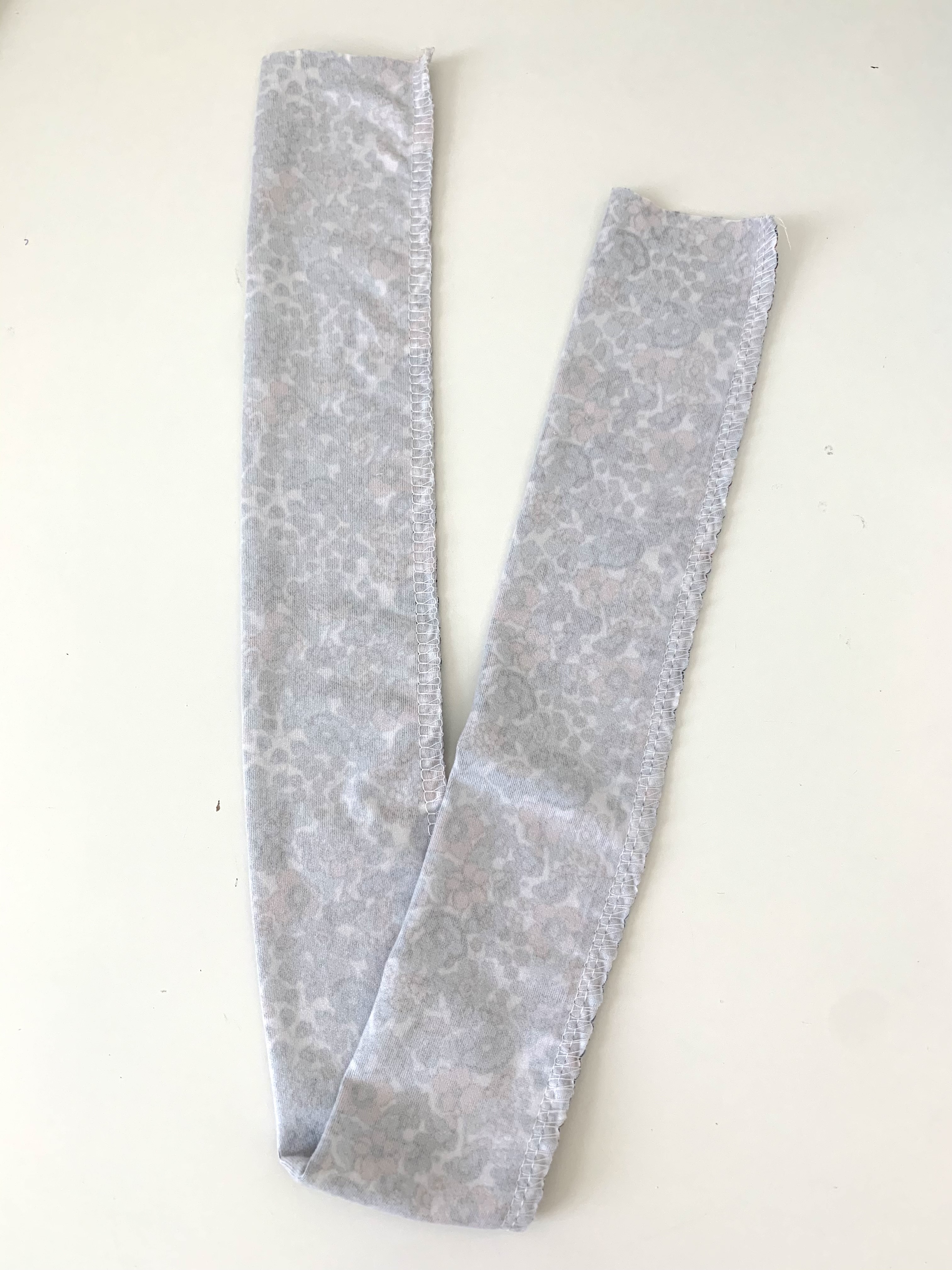 First things first, we need to cut out the fabric. I cut out a rectangle 25″ wide by 4 1/2″ long. This particular bow is meant for a newborn or 0-3 month old baby, head circumference being about 13 1/2″-15″. You could add a few more inches if you are making one for an older baby. These are very forgiving and easy to alter as you go to get the right size.