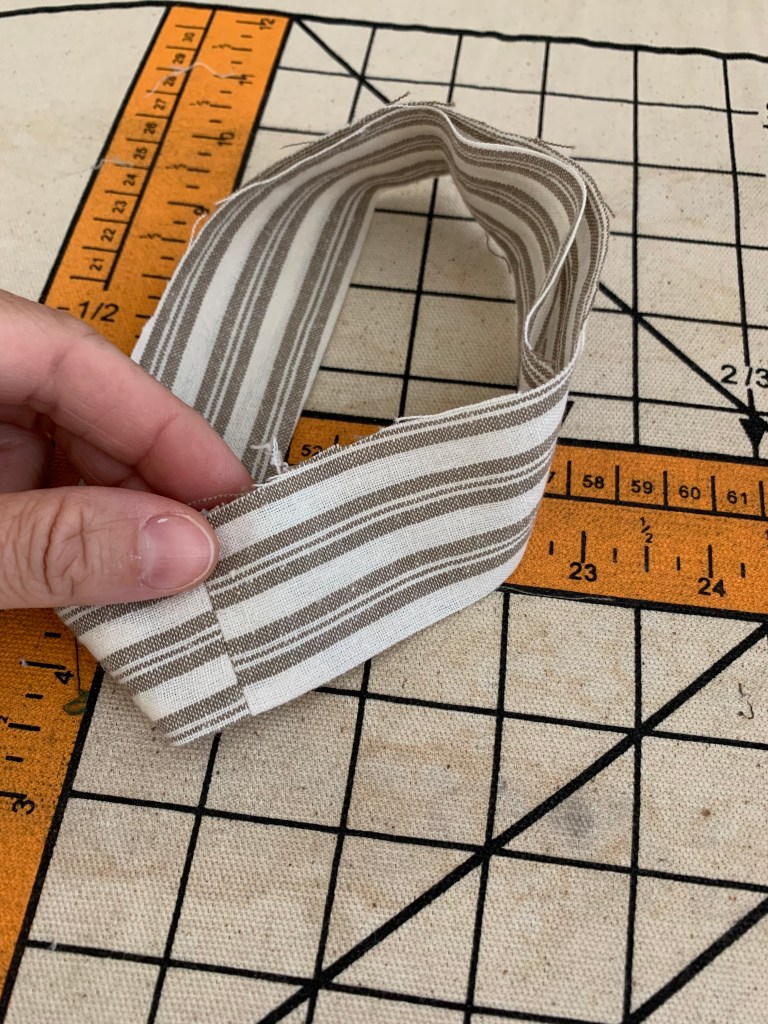 7. Press the cuff loop in half wrong sides together. (I went back and added interfacing after the next two steps, so the next two photos should have interfacing attached).