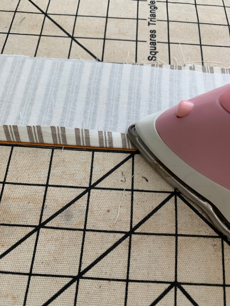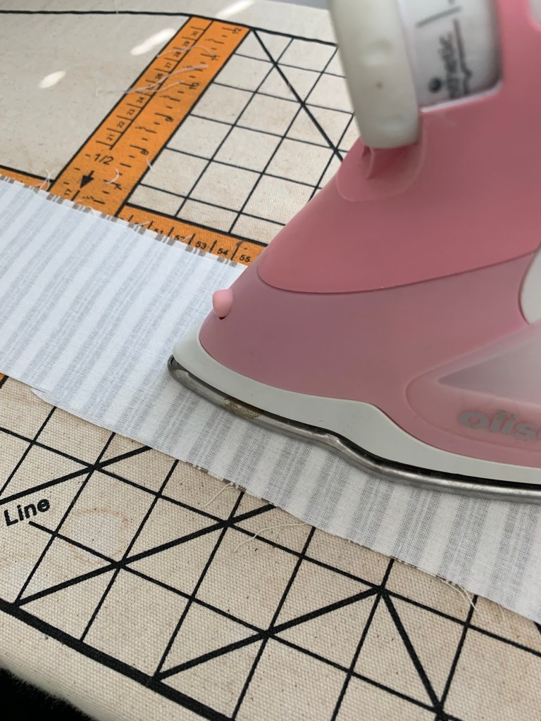 6. Now we need to prep the sleeve cuff. The pattern doesn’t recommend using interfacing unless you are using a light weight fabric. I ALWAYS recommend using interfacing. My fabric is considered medium weight and I used a light weight interfacing to add a little more stability. After you apply the interfacing, sew the two long edges right sides together.