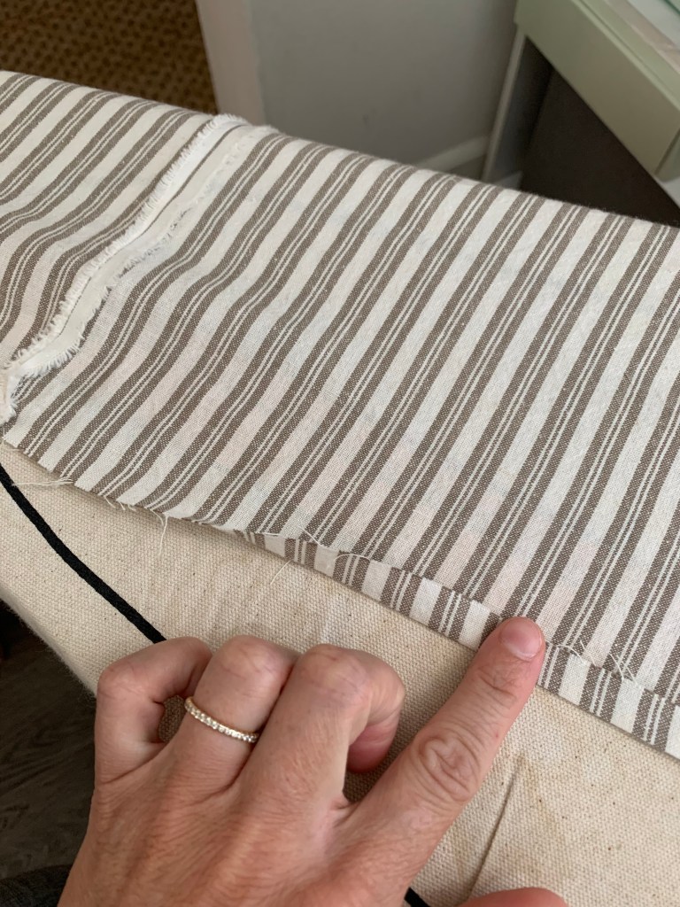 wide fabric but used 43/44″ wide fabric. I played with my striped placement as follows:
