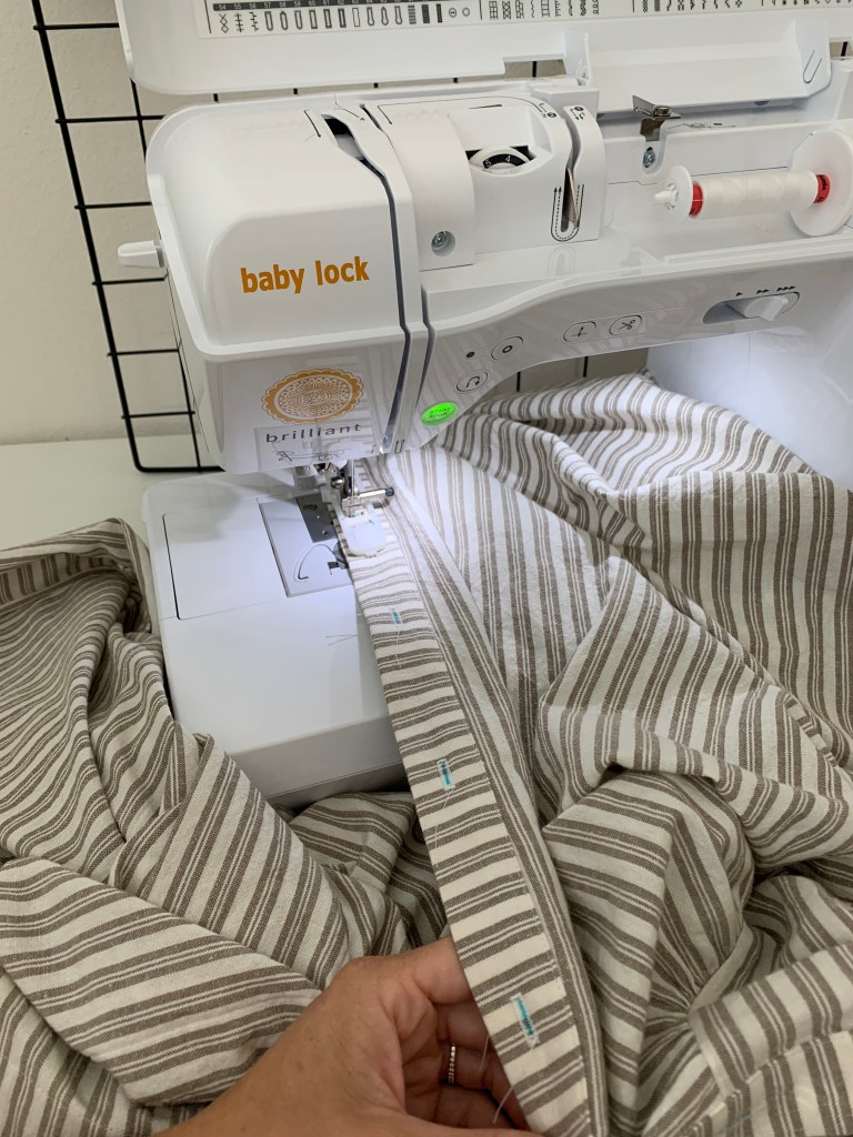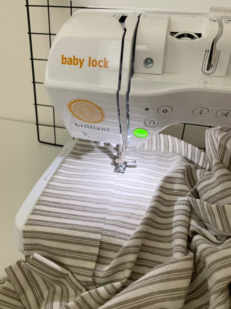For this project, I used the Baby Lock Brilliant Sewing machine and the Baby Lock Celebrate Serger. Can’t say enough good things about these machines!