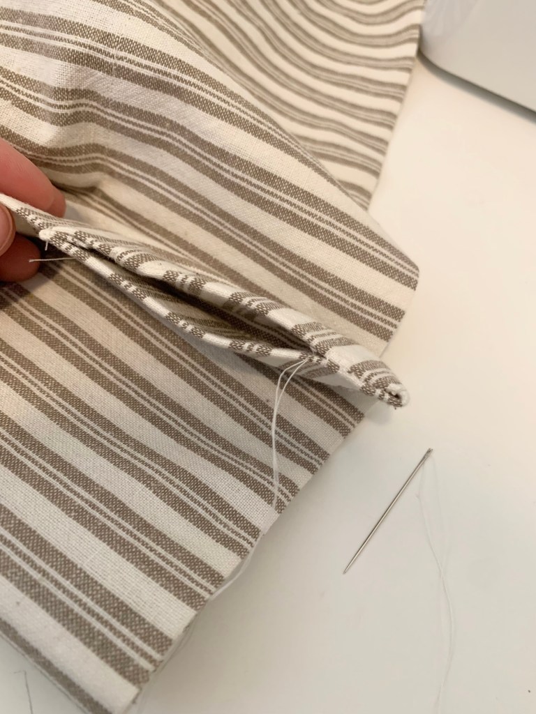 24. Hand sew or edgestitch the open edge of the bottom hem closed.