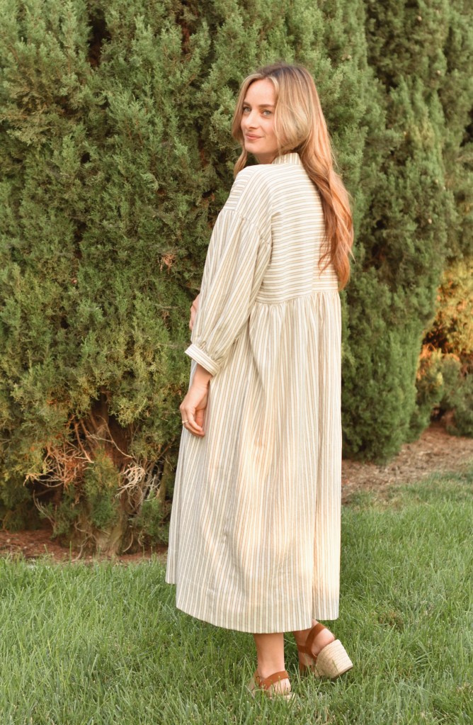 All finished! Give yourself a pat on the back, and go play around with styling your dress! Sandals or white sneakers, simple gold jewelry, apply some lip color and let your hair down- you’re ready to go! I hope you love your dress as much as I do!