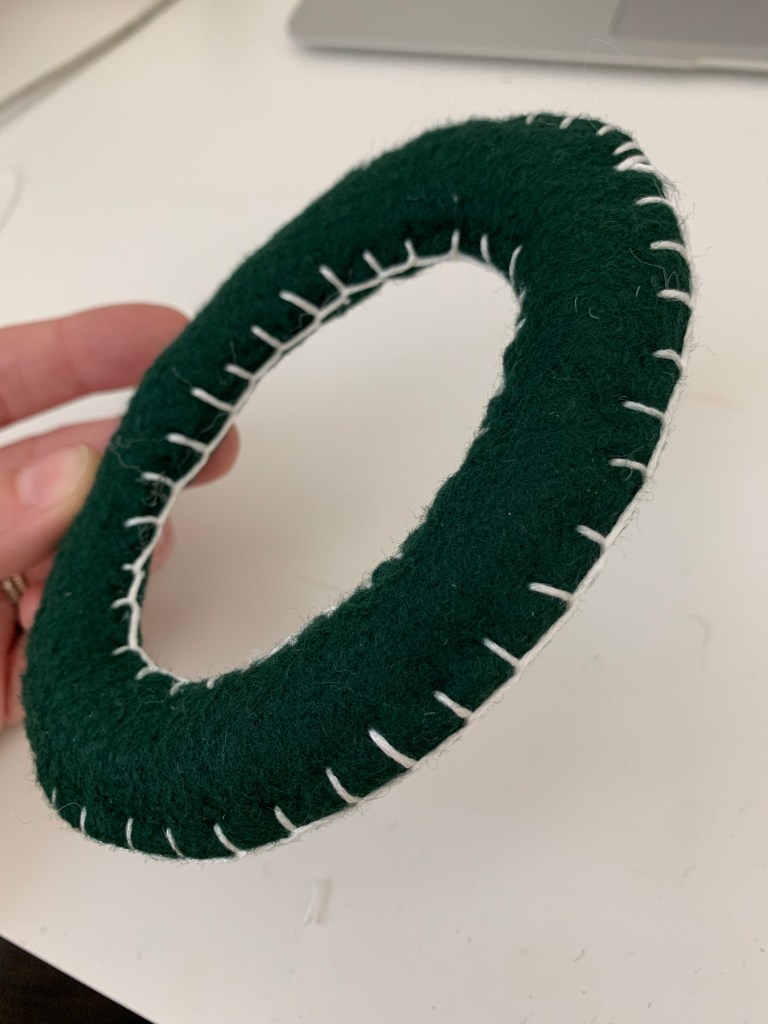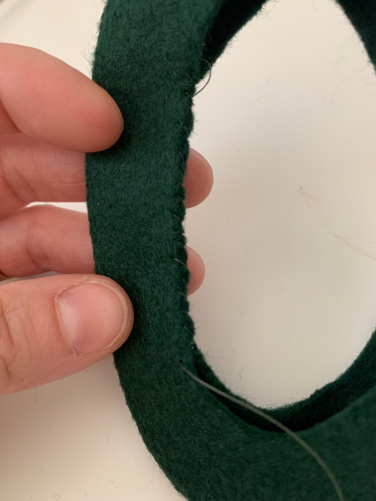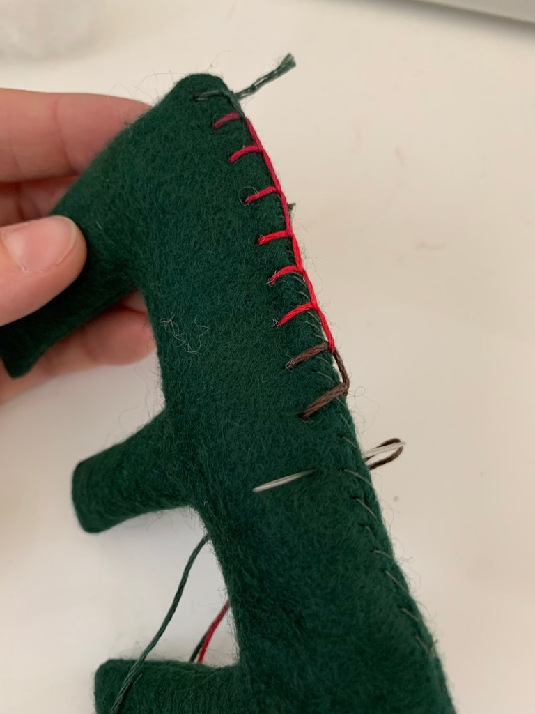 Step Four: Using matching thread and a hand sewing needle, stitch up the opening of the letter. We will be covering up the stitching with a decorative stitch so it doesn’t need to be perfect!