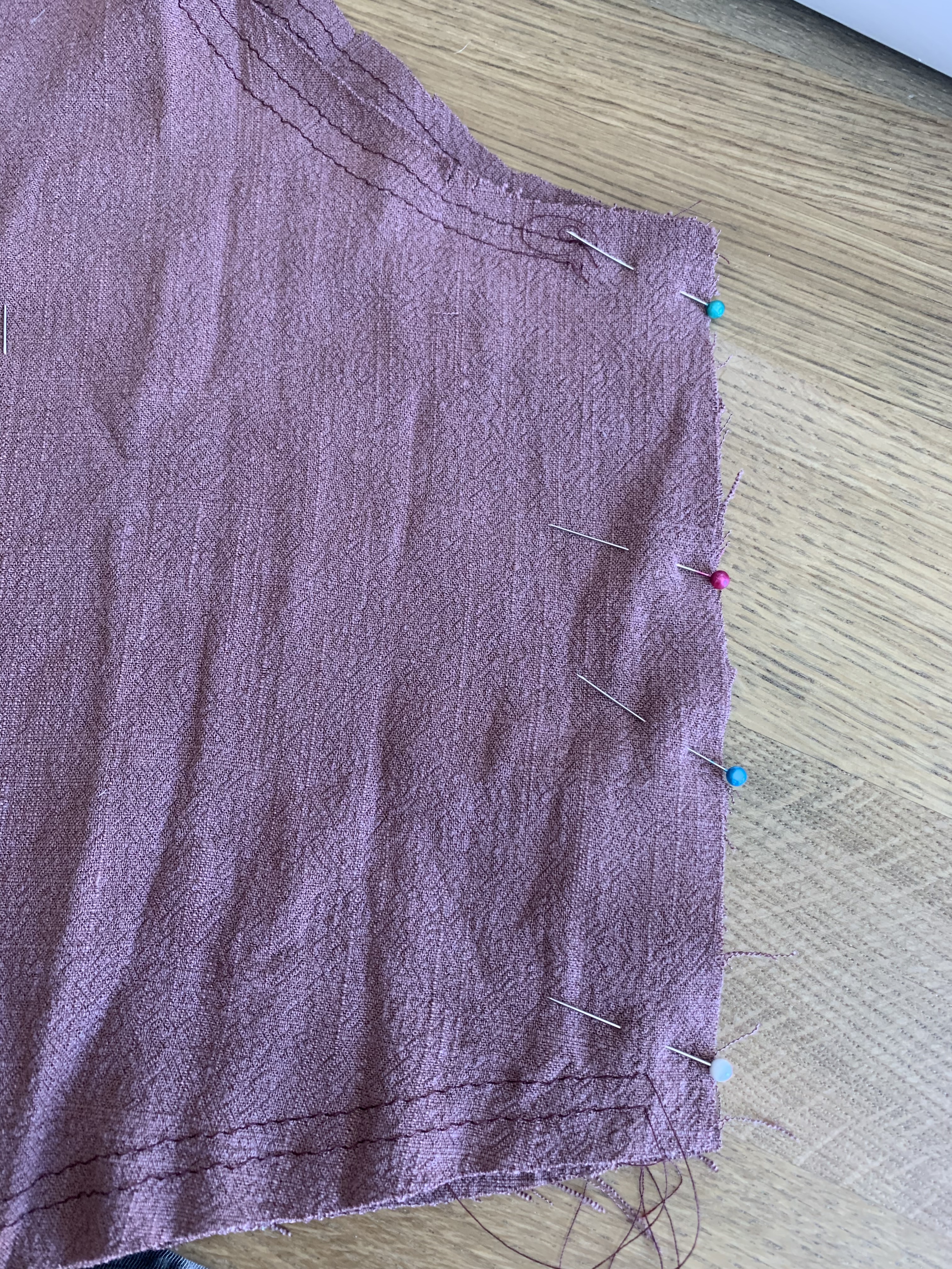 Step 7: Pin the sleeve seams right sides together. Sew at 1/2″ and finish.
