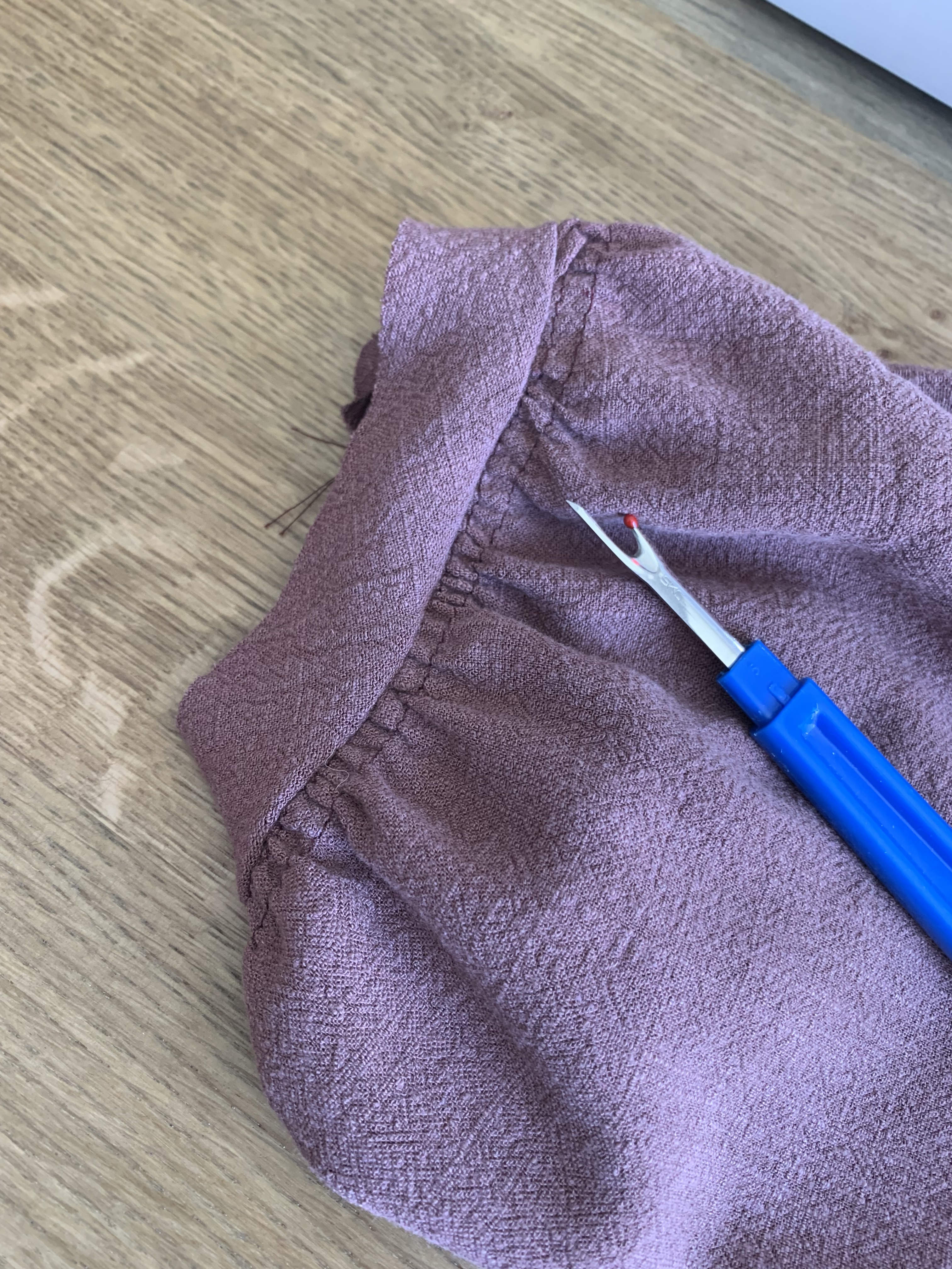Step 6: Time to prep the sleeves! First, sew two rows of basting stitches along the top and bottom of the sleeve.
