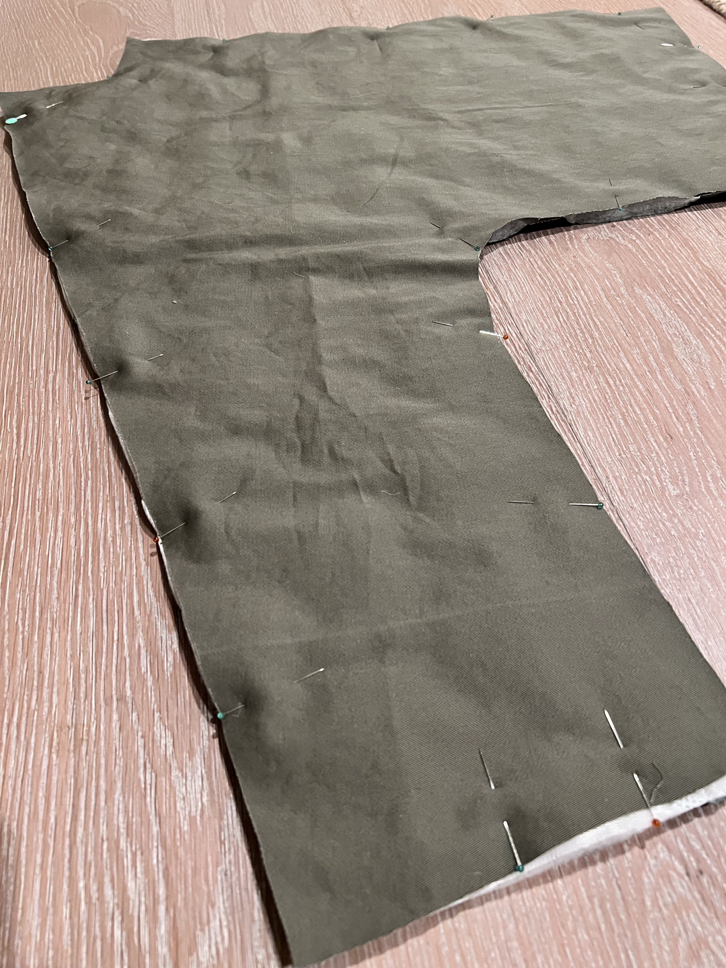 Step 3: Patch pockets! My pockets measured roughly 7 1/2″ wide by 8″ long. Second, baste the lining to the pocket wrong sides together.