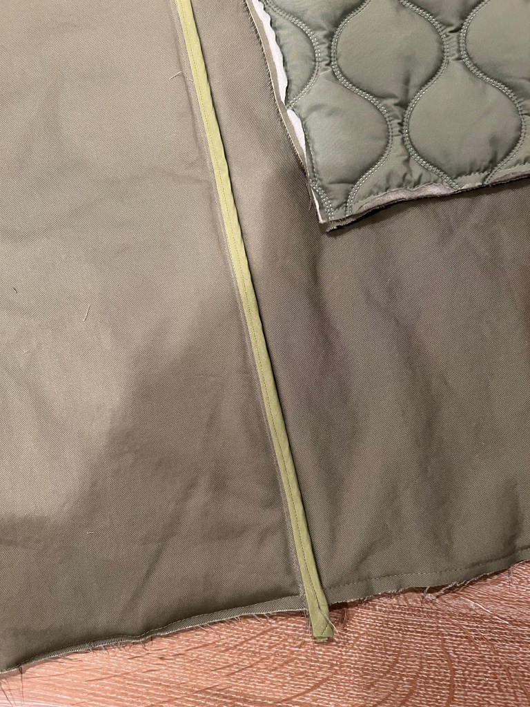 Step 4: Using bias tape, finish the front bottom edges of the jacket.