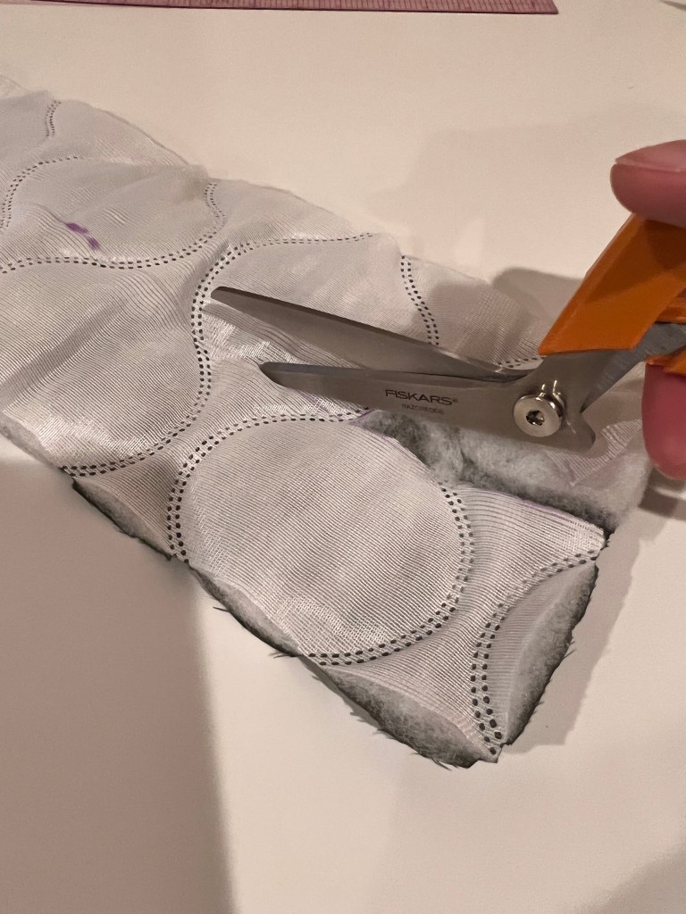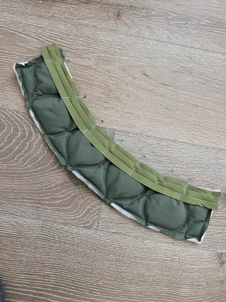 Step 6: Attach the back waistband. Cut off half/ tear out of the batting from the waistband piece.