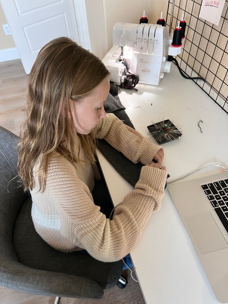 I helped her with attaching and sewing all of the sweatshirt bands, and some of the pants processes like the pockets and buttonholes. She observed most all of the steps if she wasn’t sewing. She did most of the work though and I’m so proud of her!!