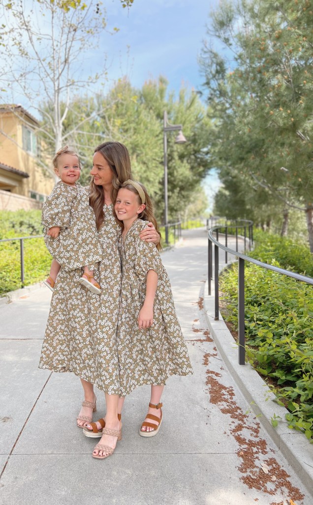 I used this gorgeous retro daisy print 100% linen gifted to me rom Isole Linen. I used 5 yards and it was just enough for the three dresses. It has such a soft hand and the drape is so beautiful! They have lots of other really beautiful prints in this linen fabric, take a minute to check them all out!