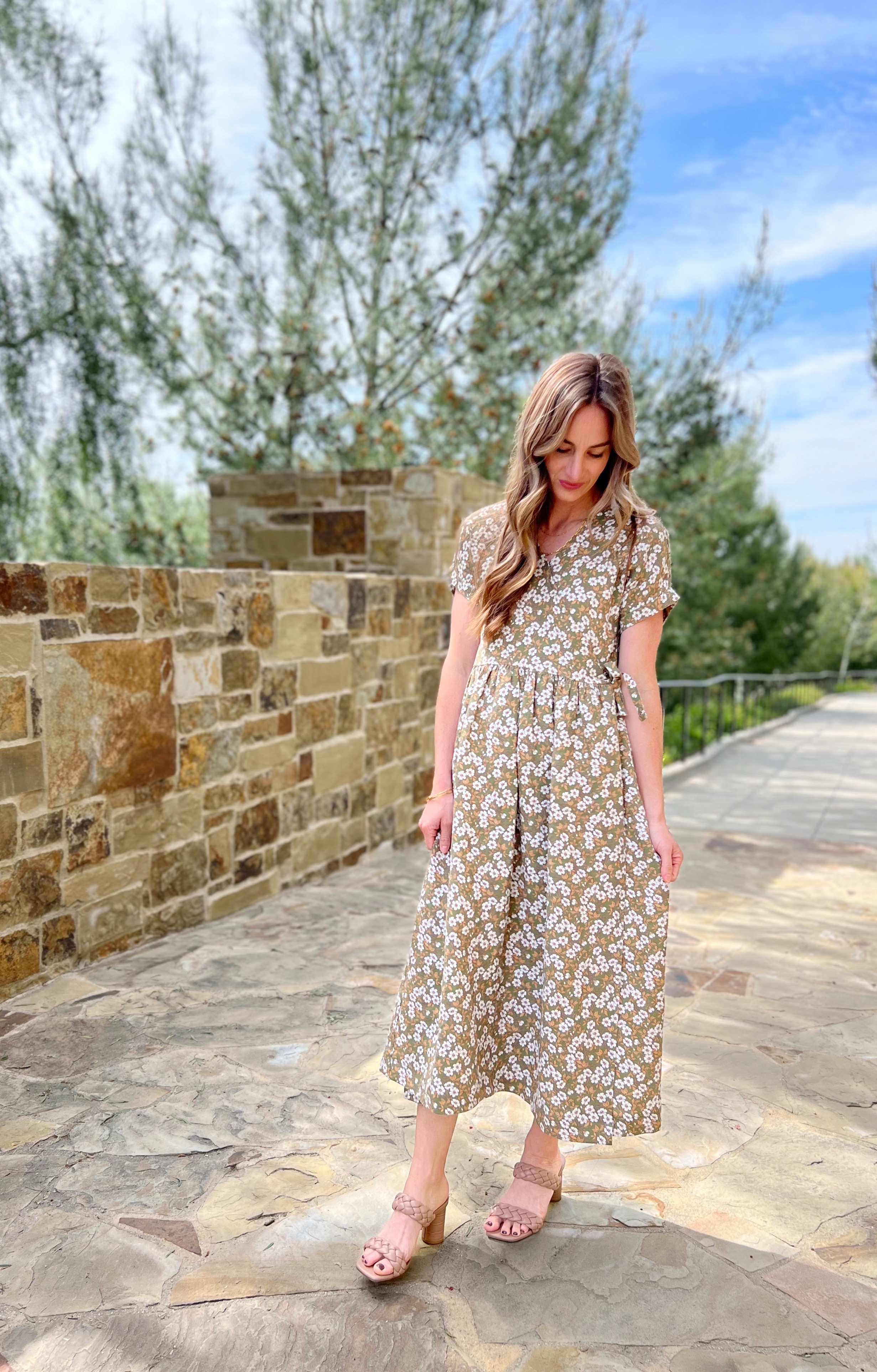 I used this gorgeous retro daisy print 100% linen gifted to me rom Isole Linen. I used 5 yards and it was just enough for the three dresses. It has such a soft hand and the drape is so beautiful! They have lots of other really beautiful prints in this linen fabric, take a minute to check them all out!