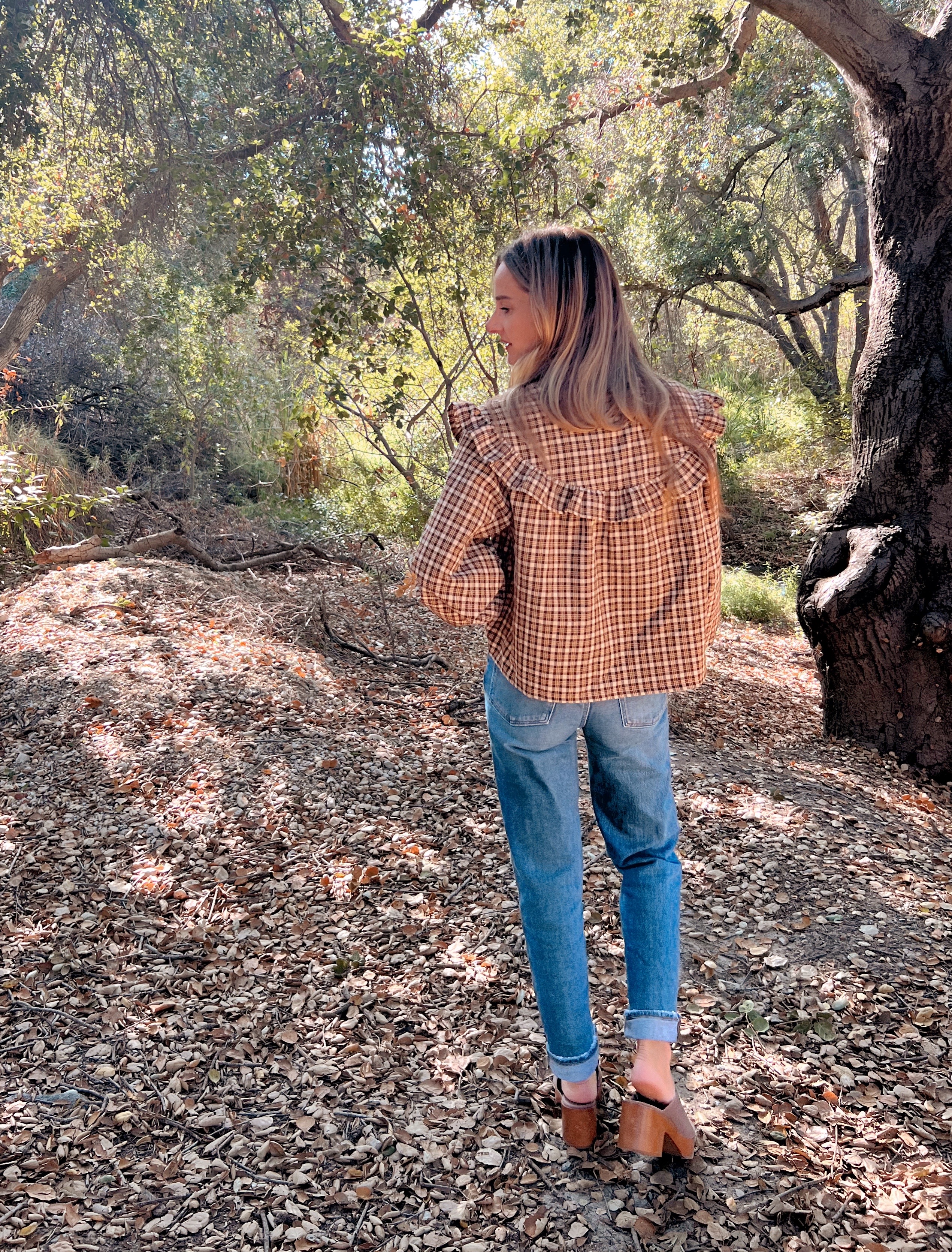 Almost every year I make a fall top, and it’s usually plaid. This year I decided to make the Raida Blouse by Madswick Studios. I love the feminine ruffle detail, and the big sleeves with the pleated detail on the wrist. I used my Baby Lock Brilliant sewing machine for most of the top, and my Baby Lock Celebrate for all of the seam finishes. Love love my Baby Lock machines.