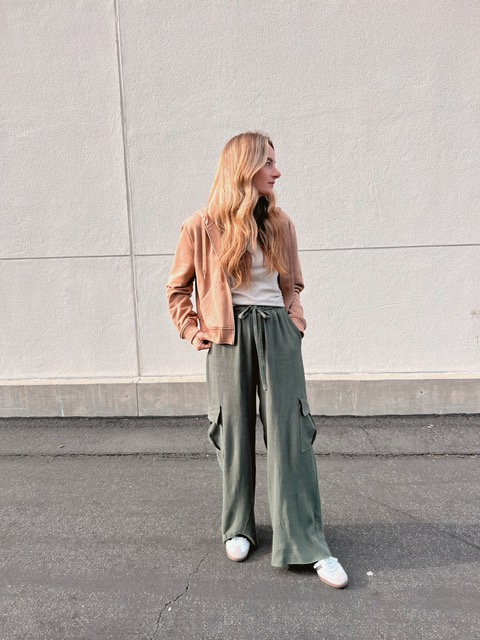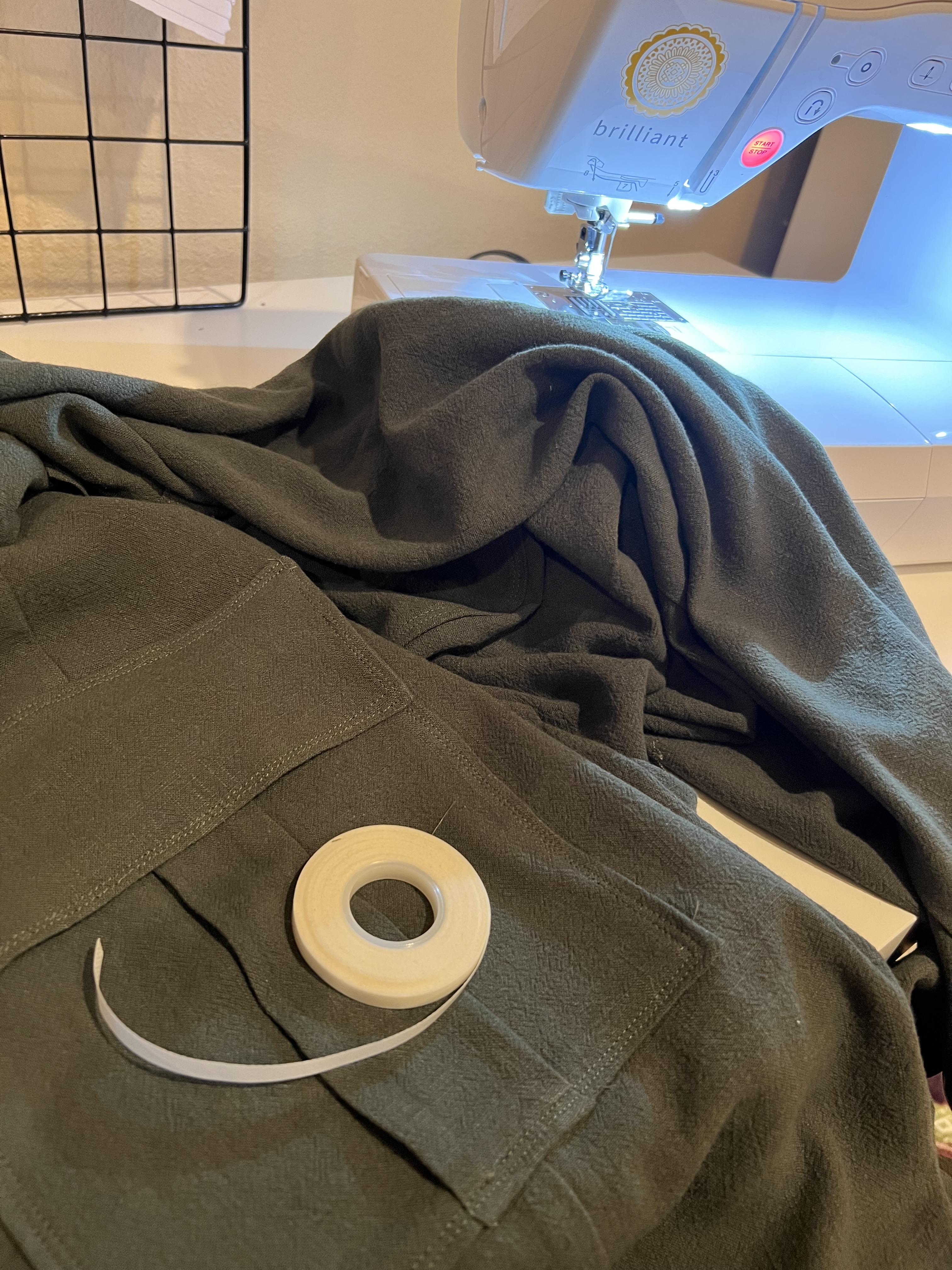 My fabric is from Joann- it’s a rayon and linen blend linked here. I wanted them to have a drapey-er, more relaxed look. I was worried the rayon component would make them a little too drapey but it’s just right. This fabric has a nice weight to it as well. I will say, sewing with a rayon blend makes the fabric a little more finicky and tricker to top stitch. I used this wash away wonder tape along the cargo pocket side and bottom edges to keep it in place before sewing down the pocket. Worked like a charm. Wash away wonder tape is always good to have in your back pocket for situations like these.