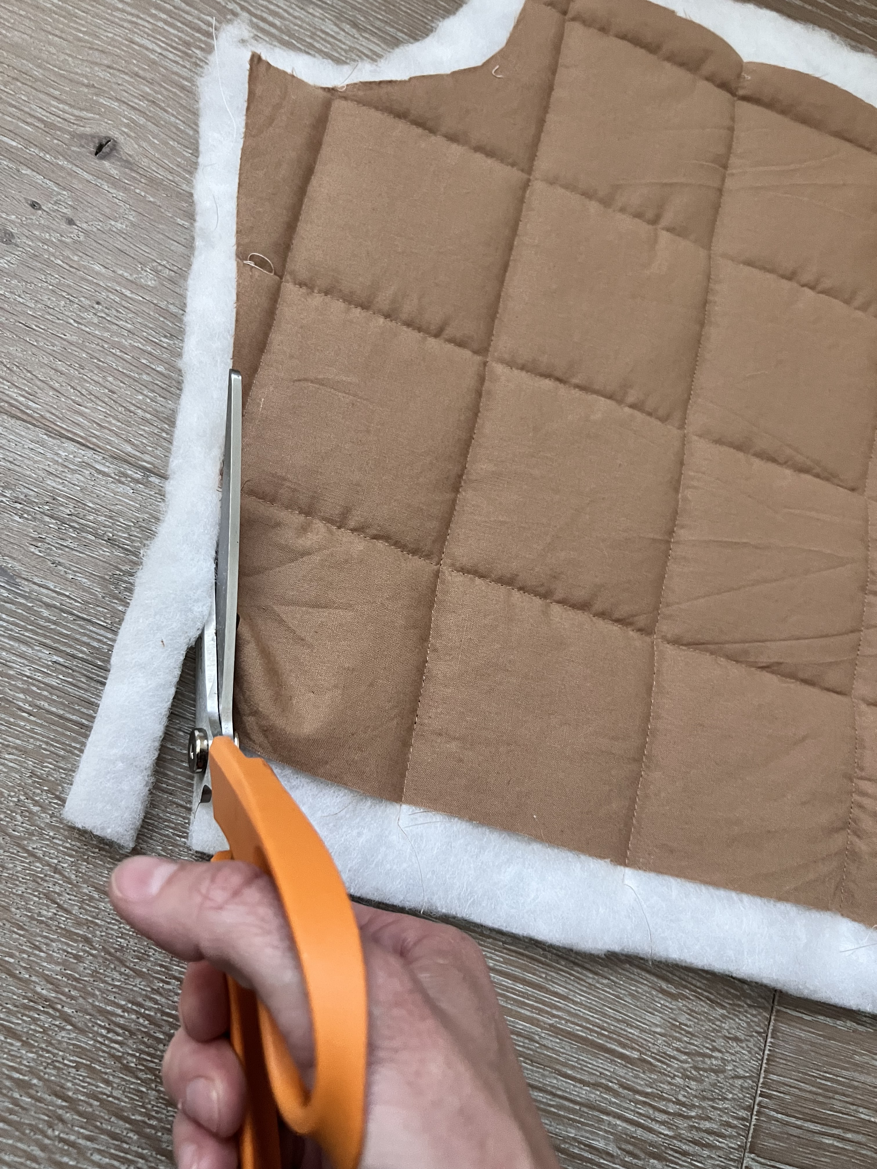 My second tip is to cut out a little extra of the batting around the pattern piece to allow for any movement during the quilting process. Once everything is quilted, trim off the extra.