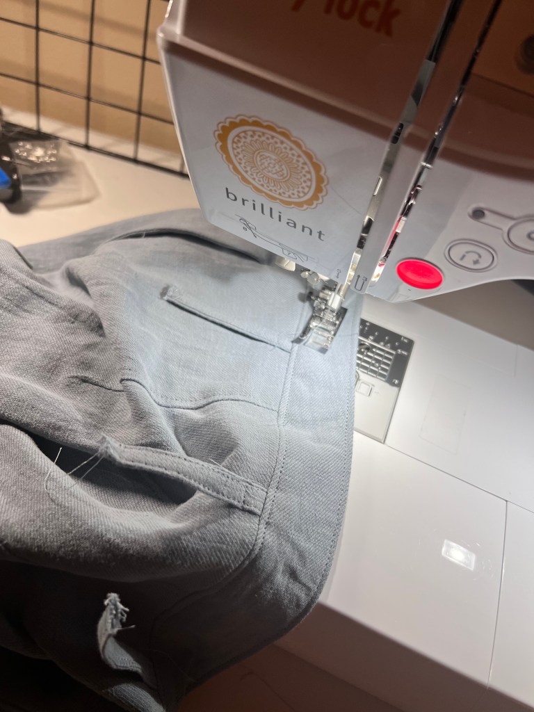 First off, the fabric! I picked this gorgeous blue bonnet cotton linen twill from Matchy Matchy Sewing Club. It’s the perfect thickness for a light summer pant, and the cotton aspect makes it super soft. It was a dream to sew with as well. I love that dusty/baby blue is a big color for spring/summer this year, and it also looks slightly like a light denim so easy to wear lots of ways in my wardrobe. I will say I was very tempted by the red color option too though!