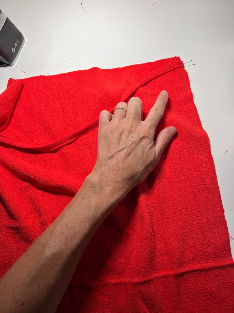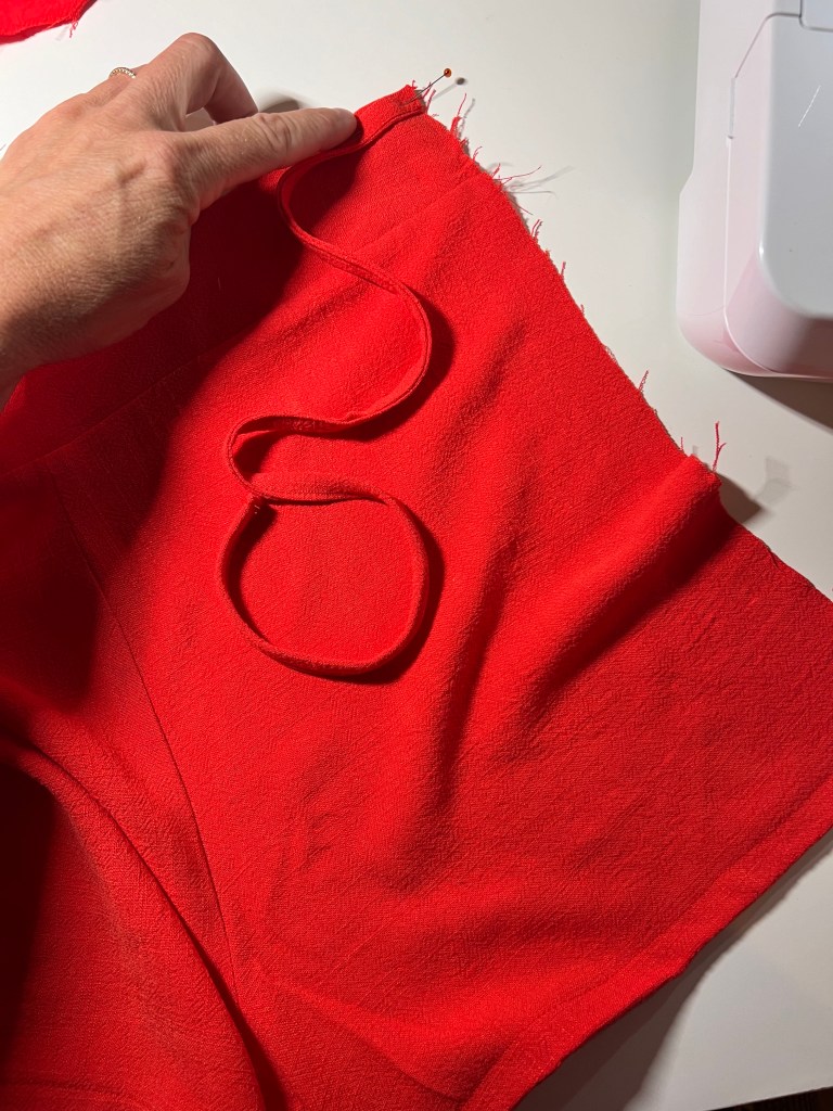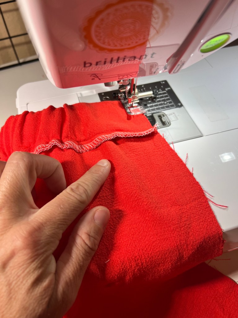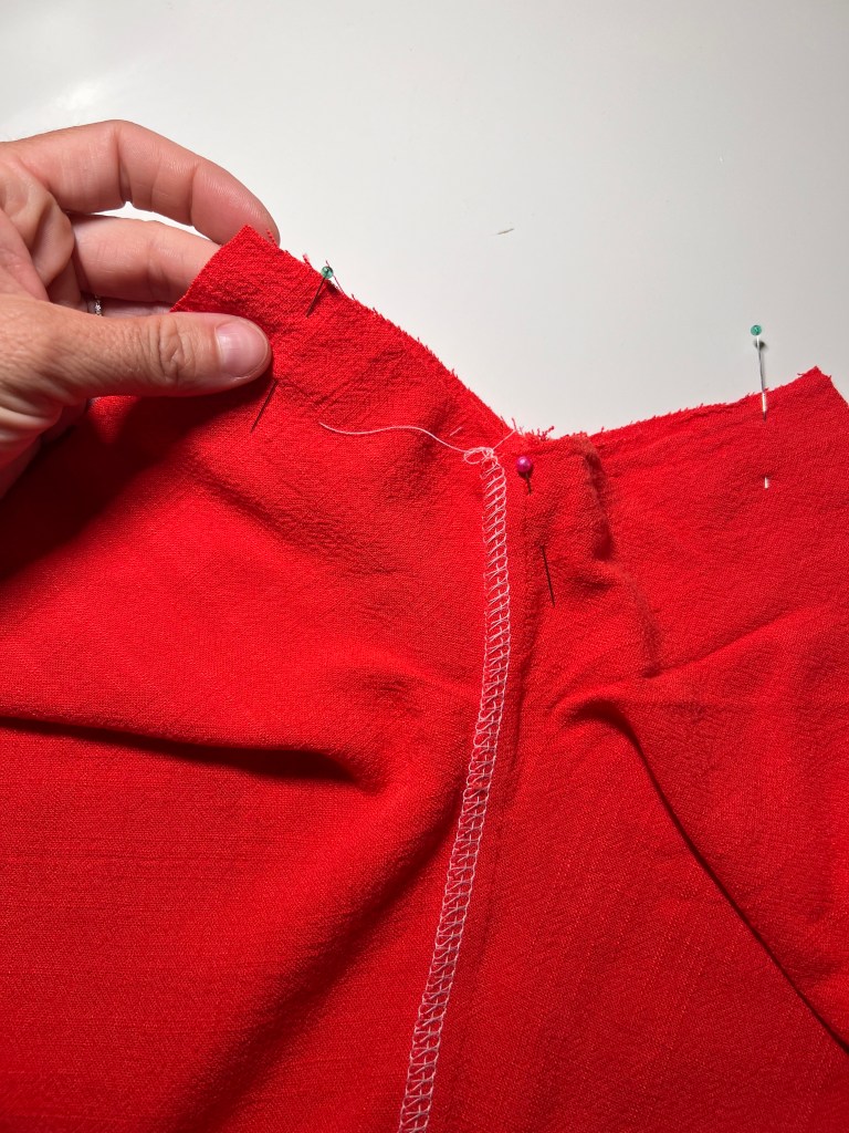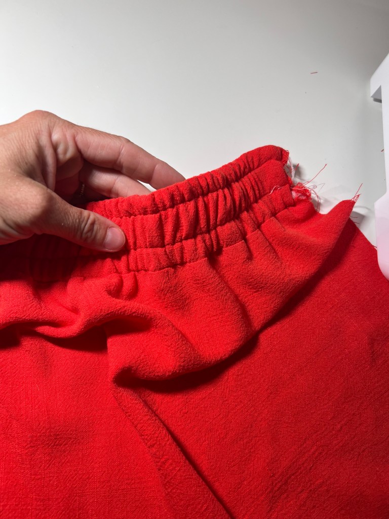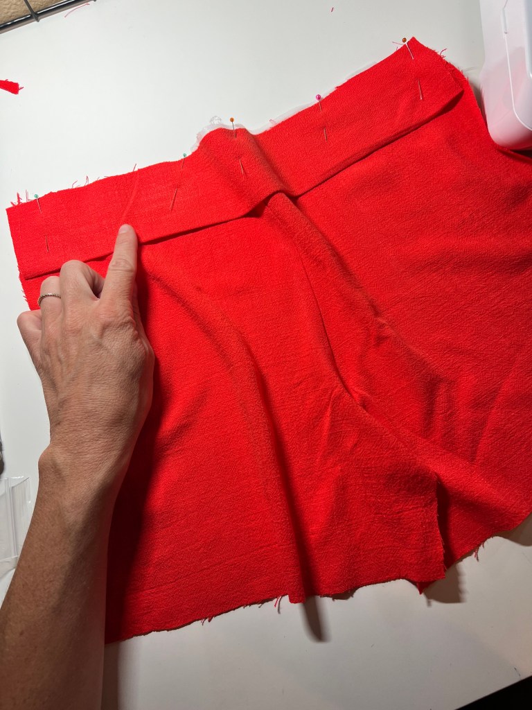 Instead of cutting my waistband piece on the fold, I cut two pieces and cut ONE piece shorter to 15.5″.