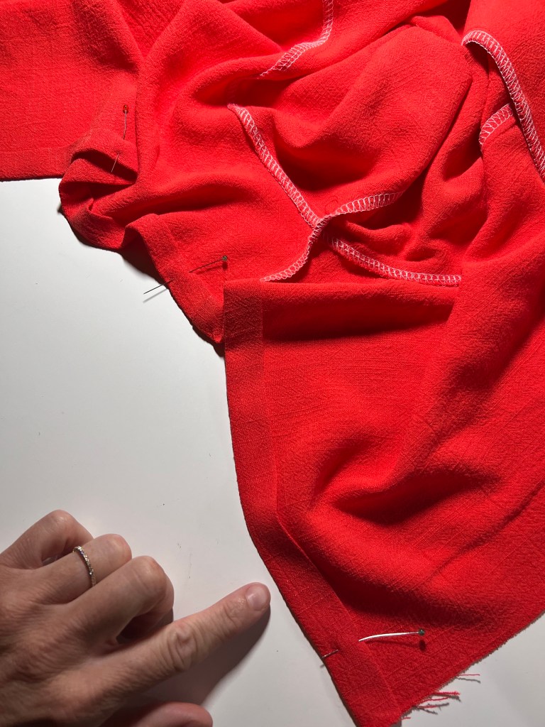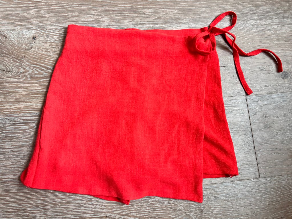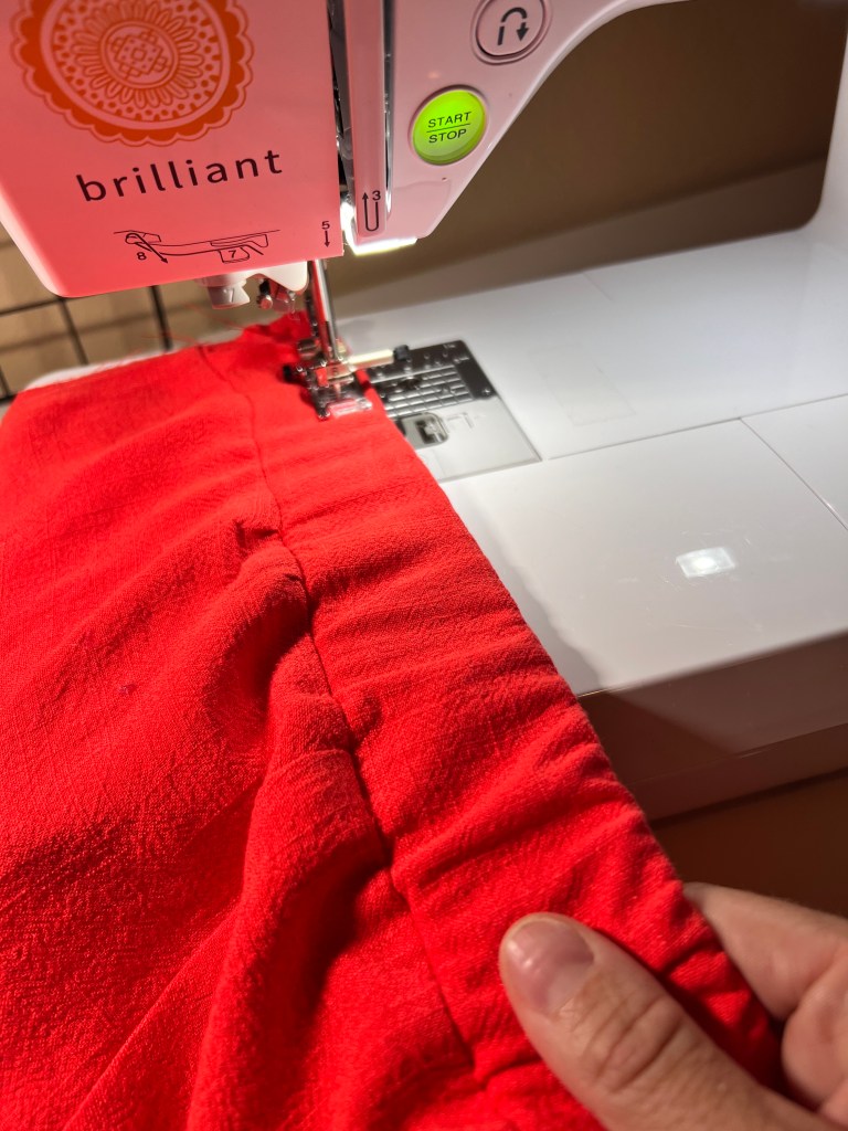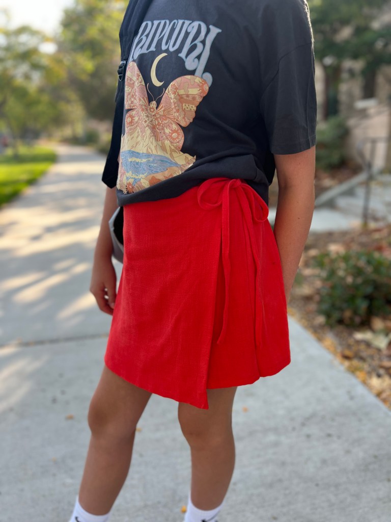 I realized we could just make our own and base it off a kids shorts pattern. We used the Paper Cut Pattern Kids Tula Pants pattern. The fabric is called Red Rush Viscose Linen from Matchy Matchy Sewing Club. We love how it turned out! It was a super quick sew, we made the whole thing in under two hours. (That’s with my daughter sewing some seams and documenting along the way for this post).
