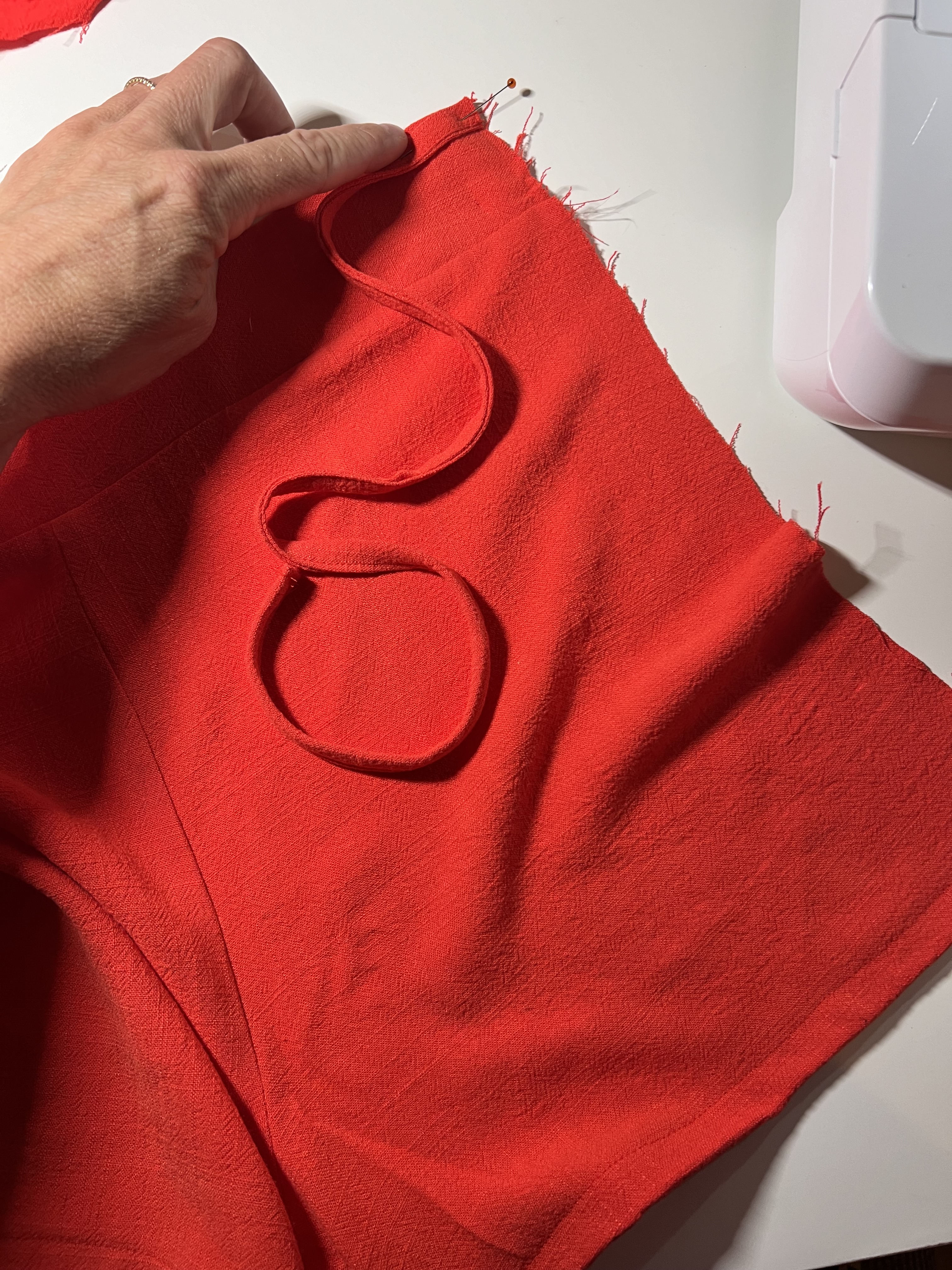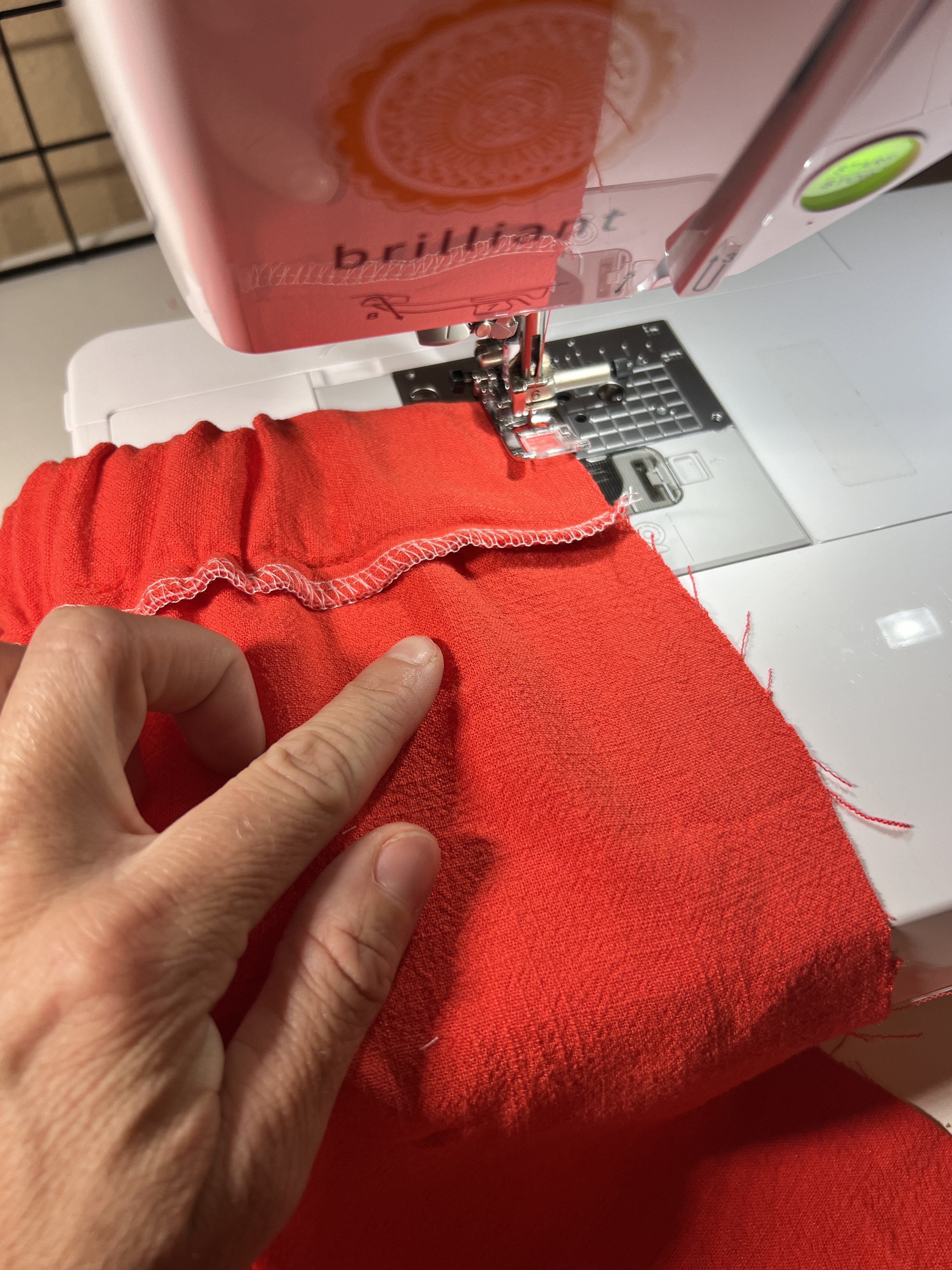 Instead of cutting my waistband piece on the fold, I cut two pieces and cut ONE piece shorter to 15.5″.