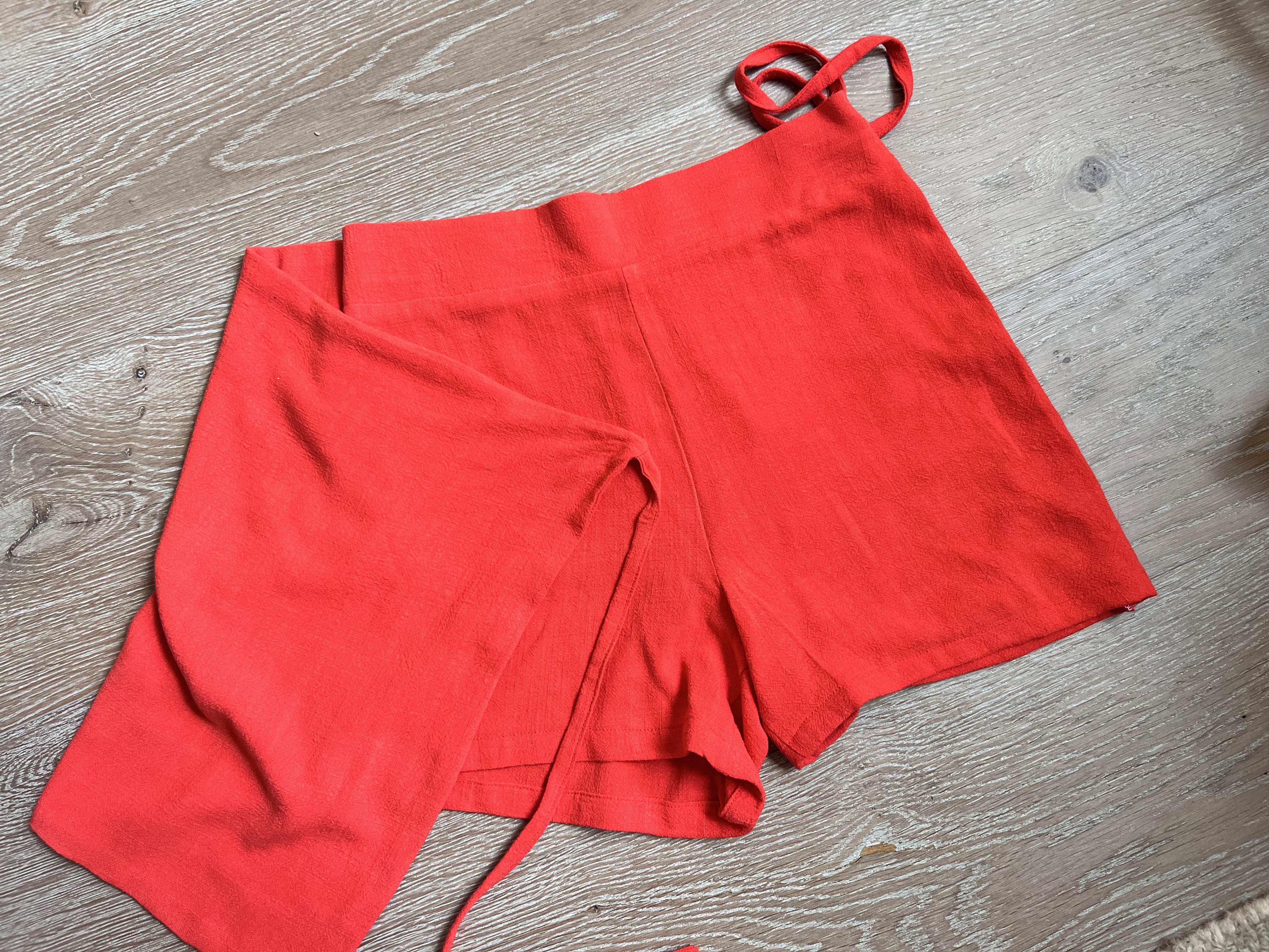 I realized we could just make our own and base it off a kids shorts pattern. We used the Paper Cut Pattern Kids Tula Pants pattern. The fabric is called Red Rush Viscose Linen from Matchy Matchy Sewing Club. We love how it turned out! It was a super quick sew, we made the whole thing in under two hours. (That’s with my daughter sewing some seams and documenting along the way for this post).