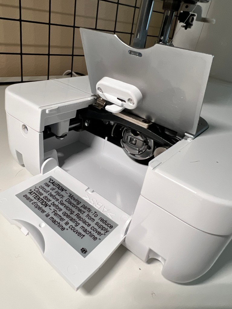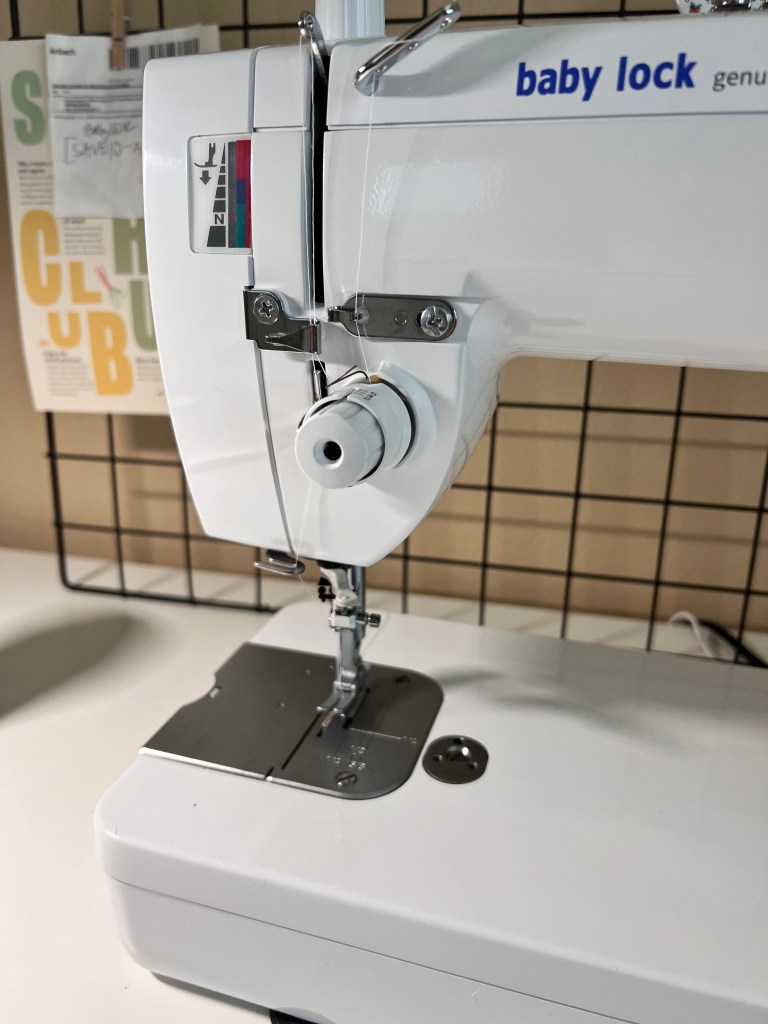 This machine has a bobbin case, so that makes it a little different from my Baby Lock Brilliant sewing machine. It’s easy to wind up and install.