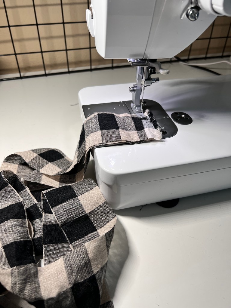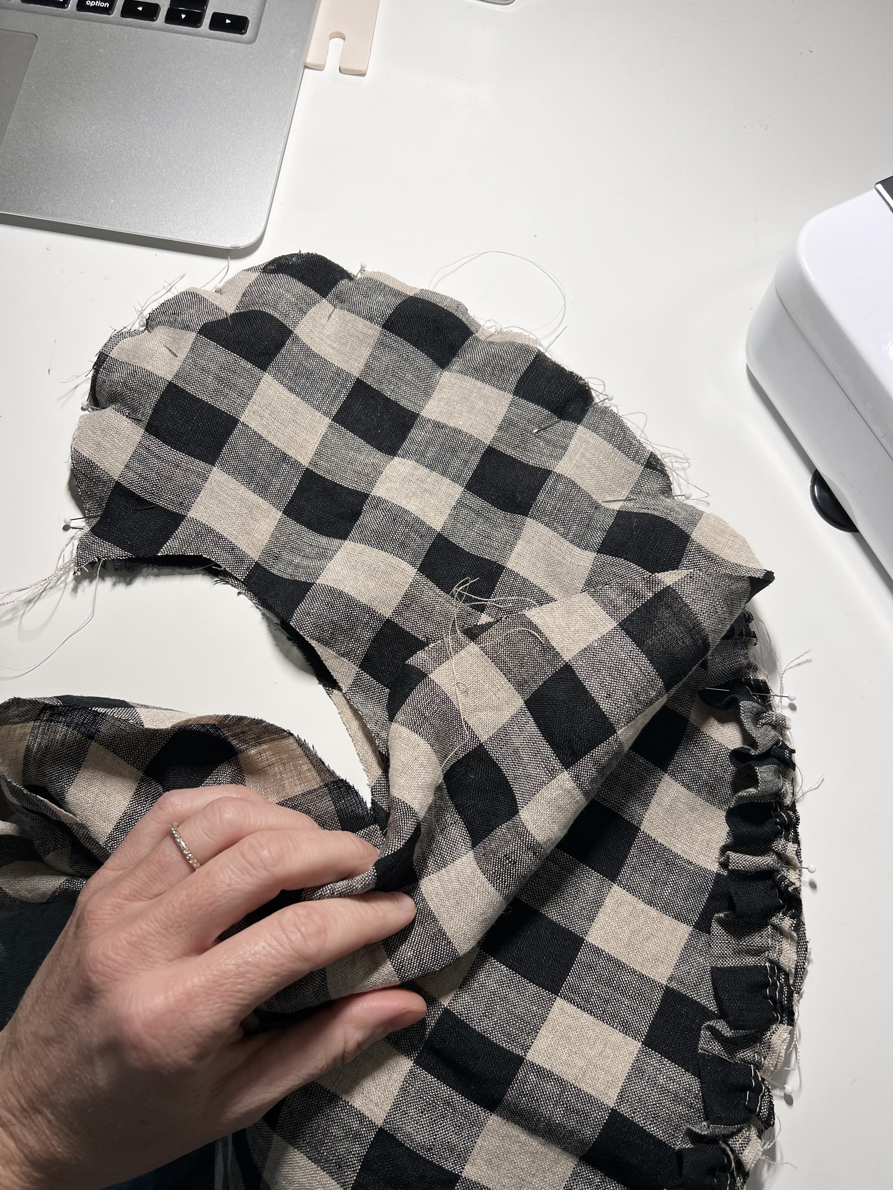 I forgot to get pictures of this next step, but sew right along the edge of the fold we just made all the way around. Now sew 3/8″ from the edge stitch just sewn all the way around again to create a casing but make sure to leave 1″ open to insert the elastic.