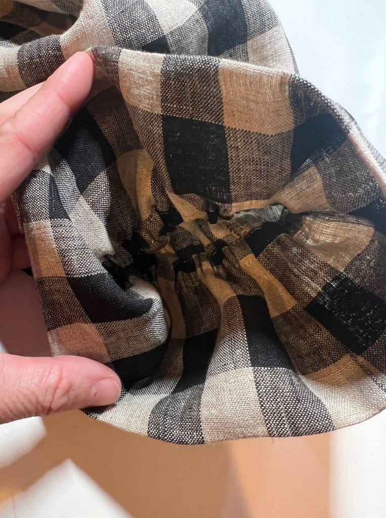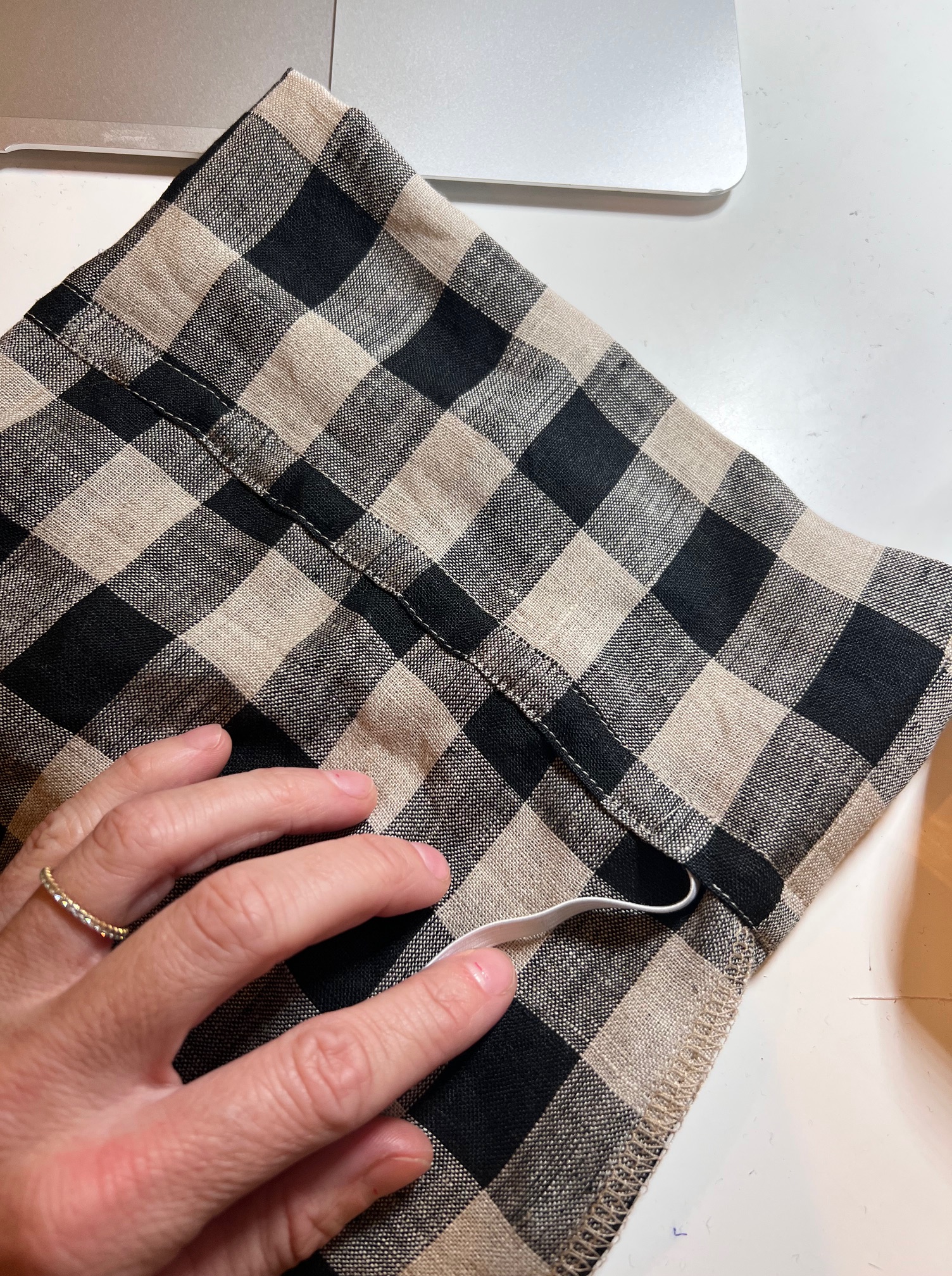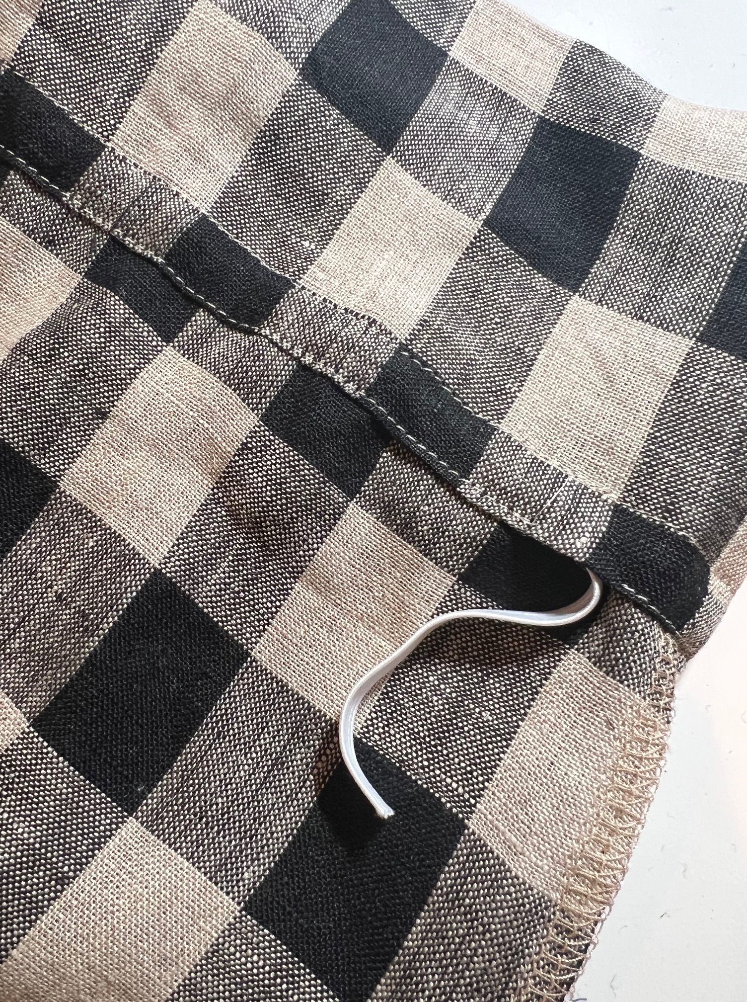 Using a safety pin and 1/4″ elastic, insert elastic into the casing.