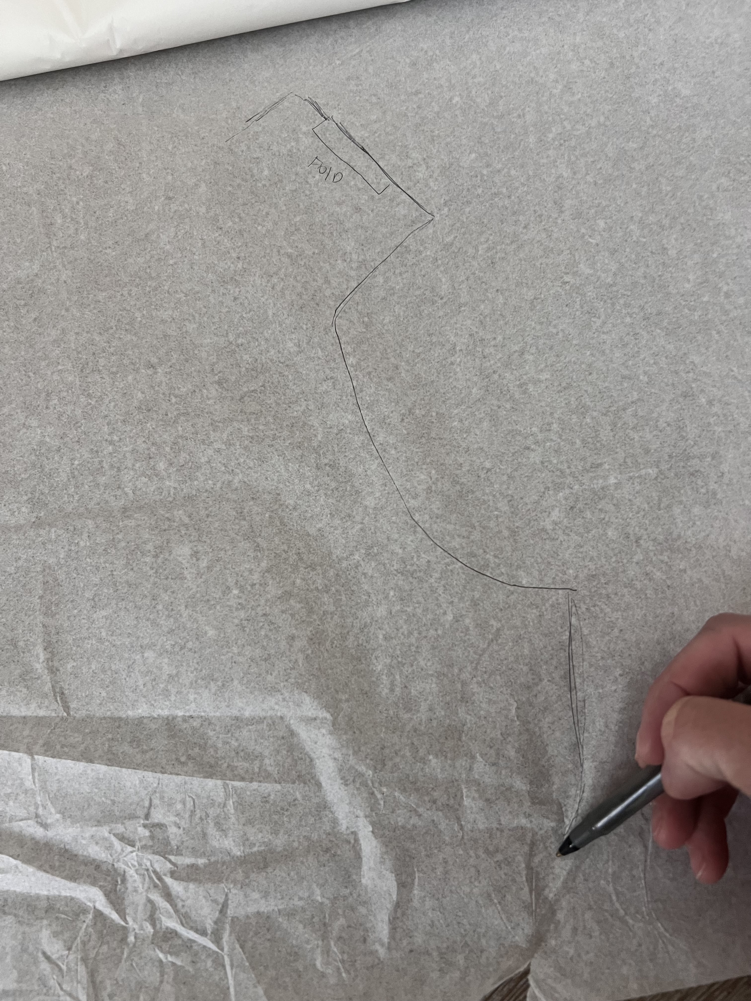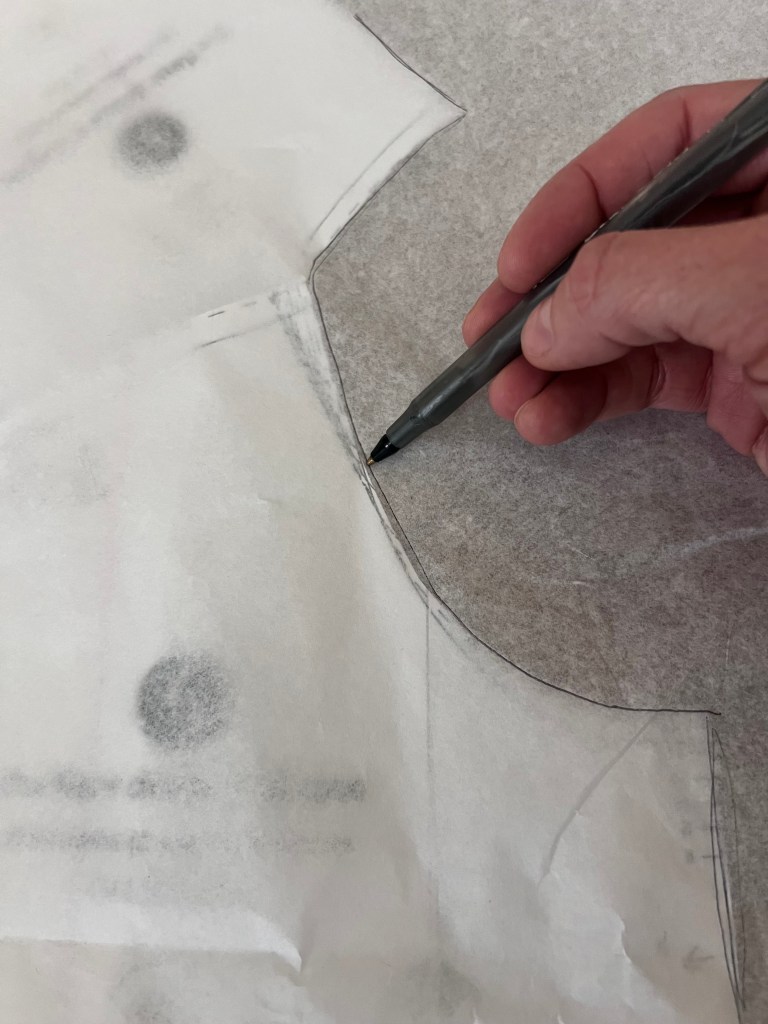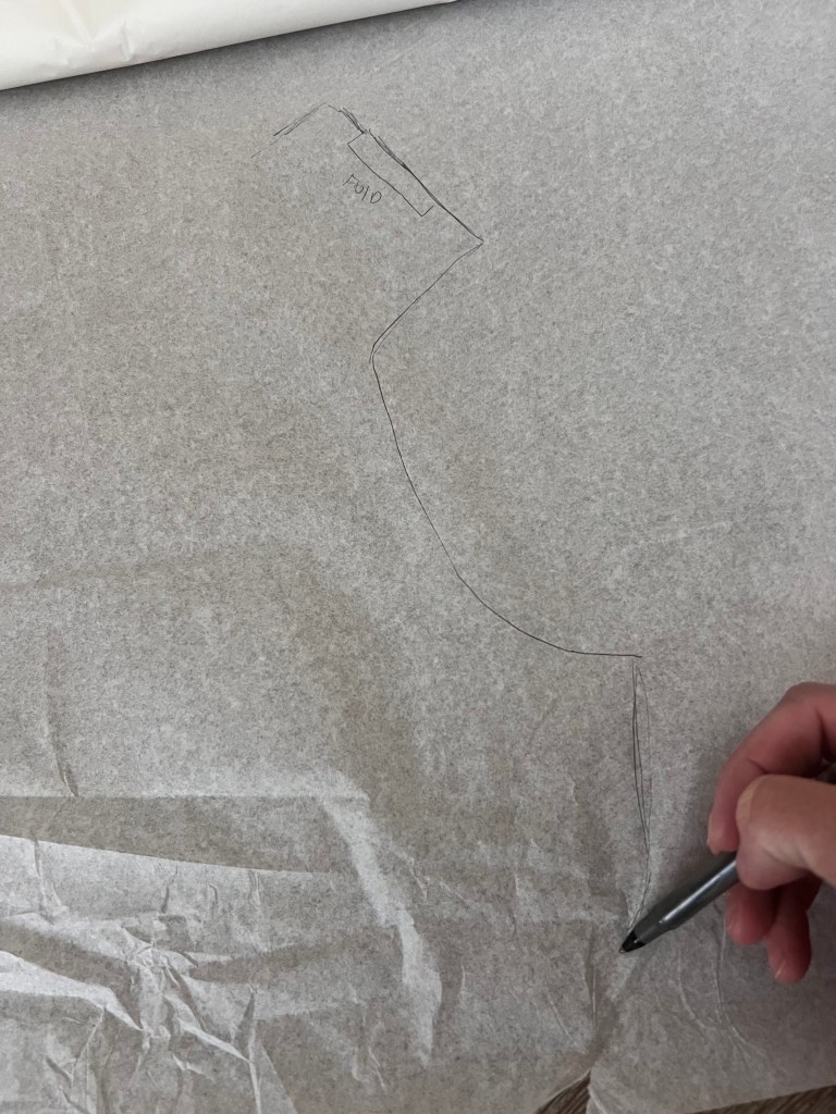 Then, I laid a piece of tracing paper on top and traced the neckline from the bodice front to the center back.
