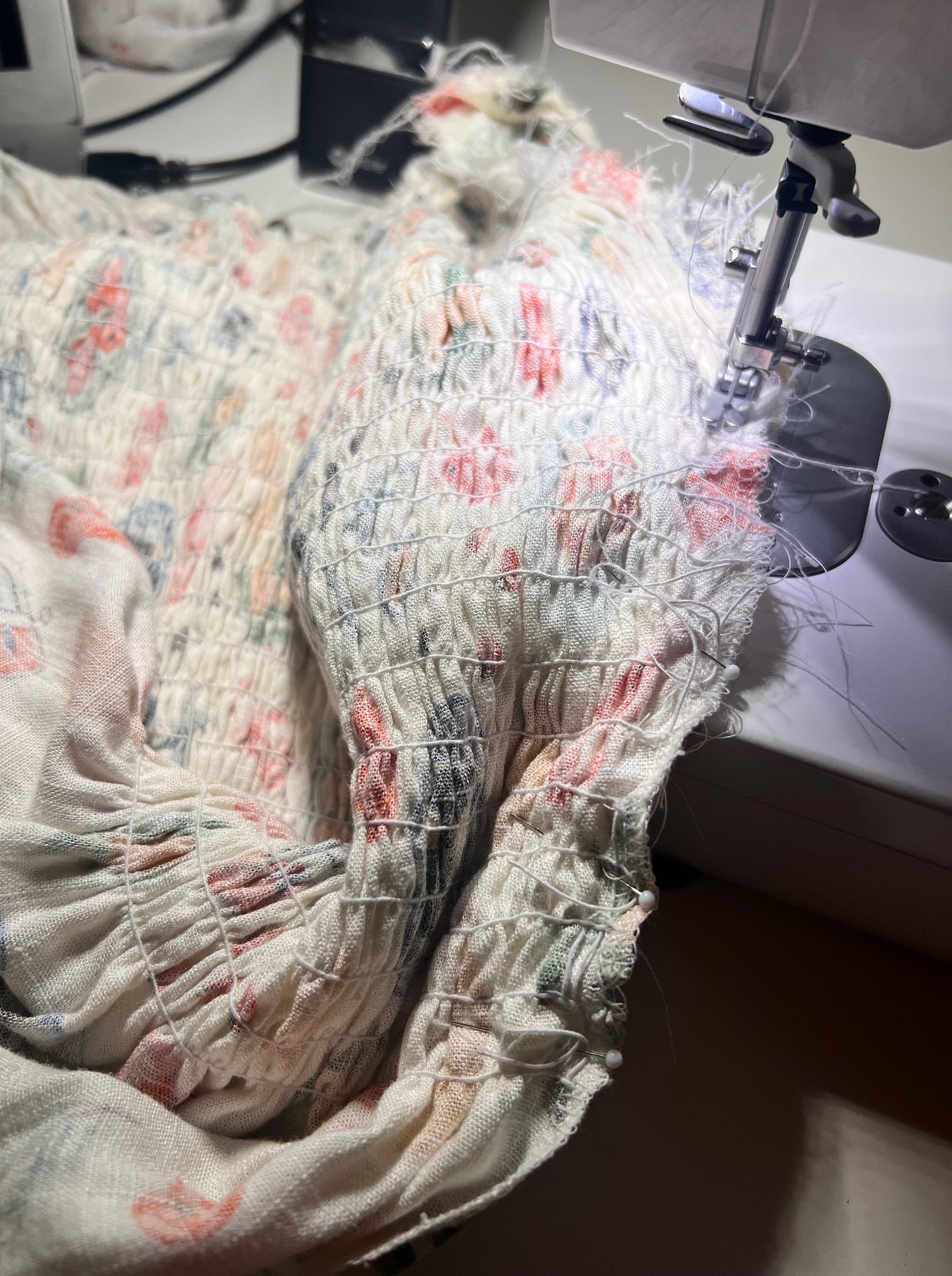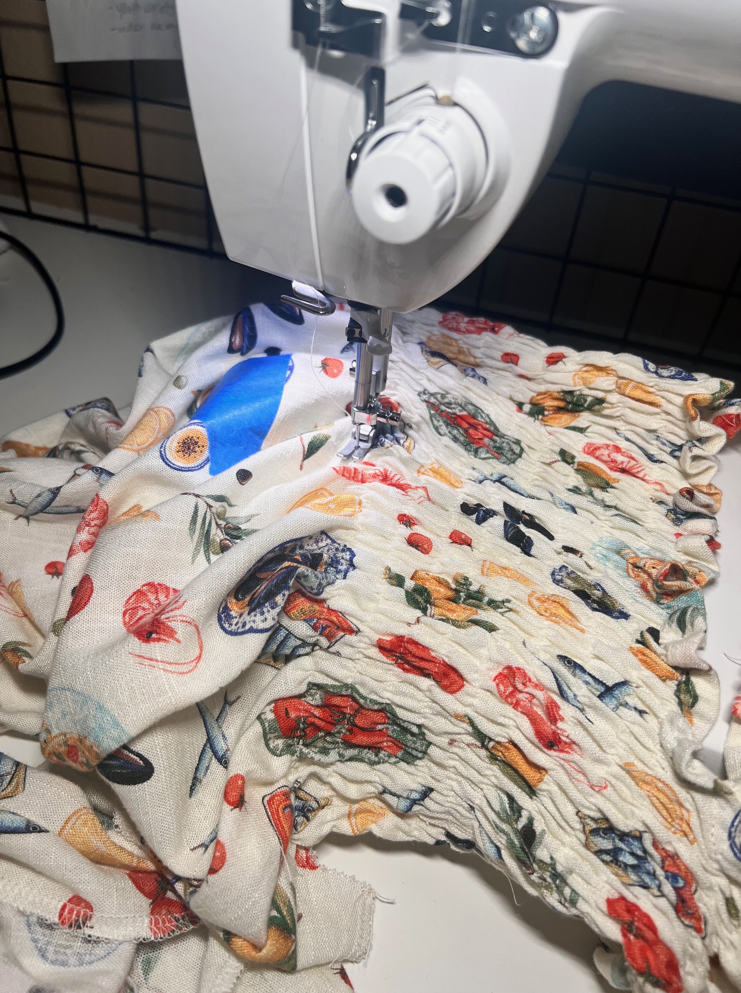 This pattern requires A LOT of ruching, and it took me many Youtube videos and trial runs to figure it out with my machine, but we conquered!