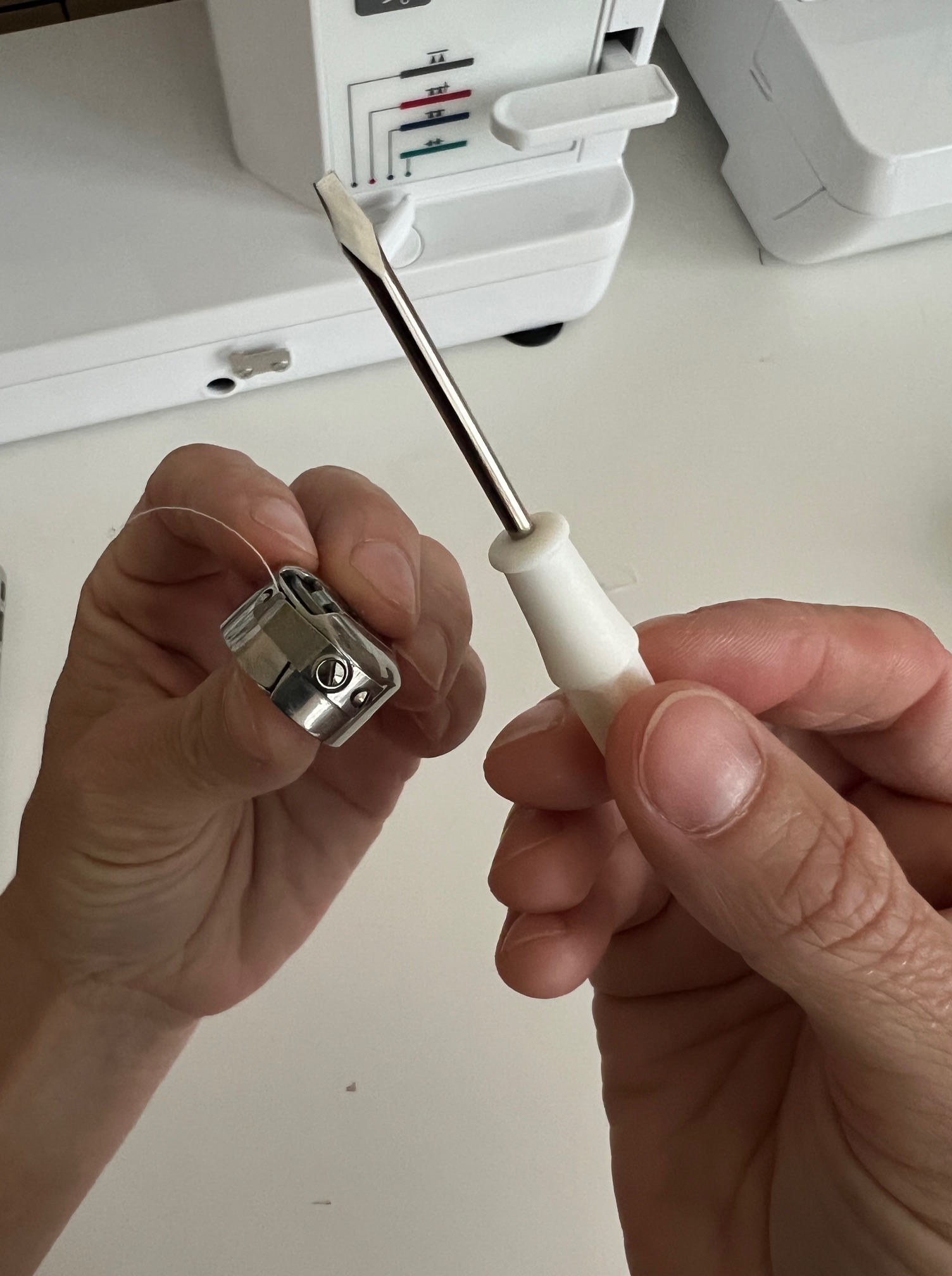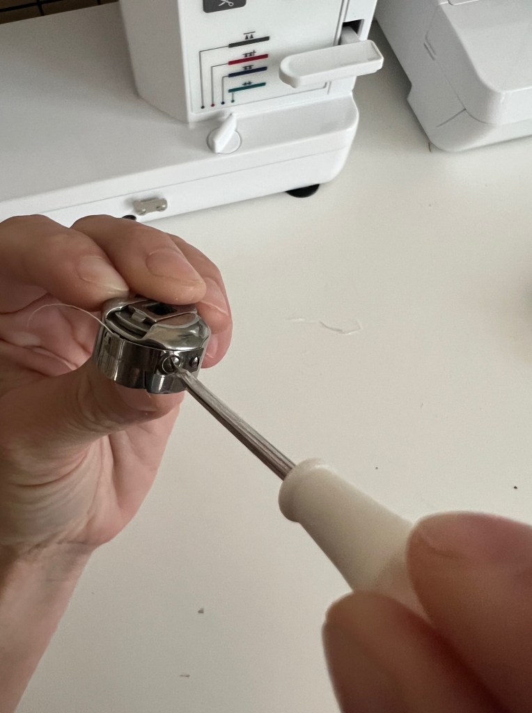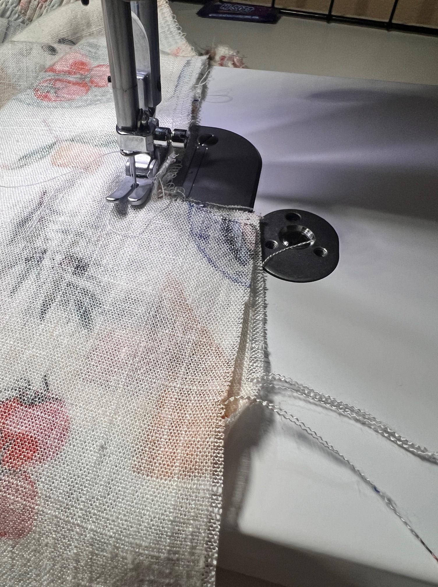 I used my Accomplish II for the ruching, and I found it worked best at a 4mm stitch length. My biggest help was adjusting the tension in the bobbin case! I never knew this was a thing! I used the tiny screw driver in my Accomplish II sewing kit and turned the screw on the bobbin case one time around making it slightly tighter. This did the trick!