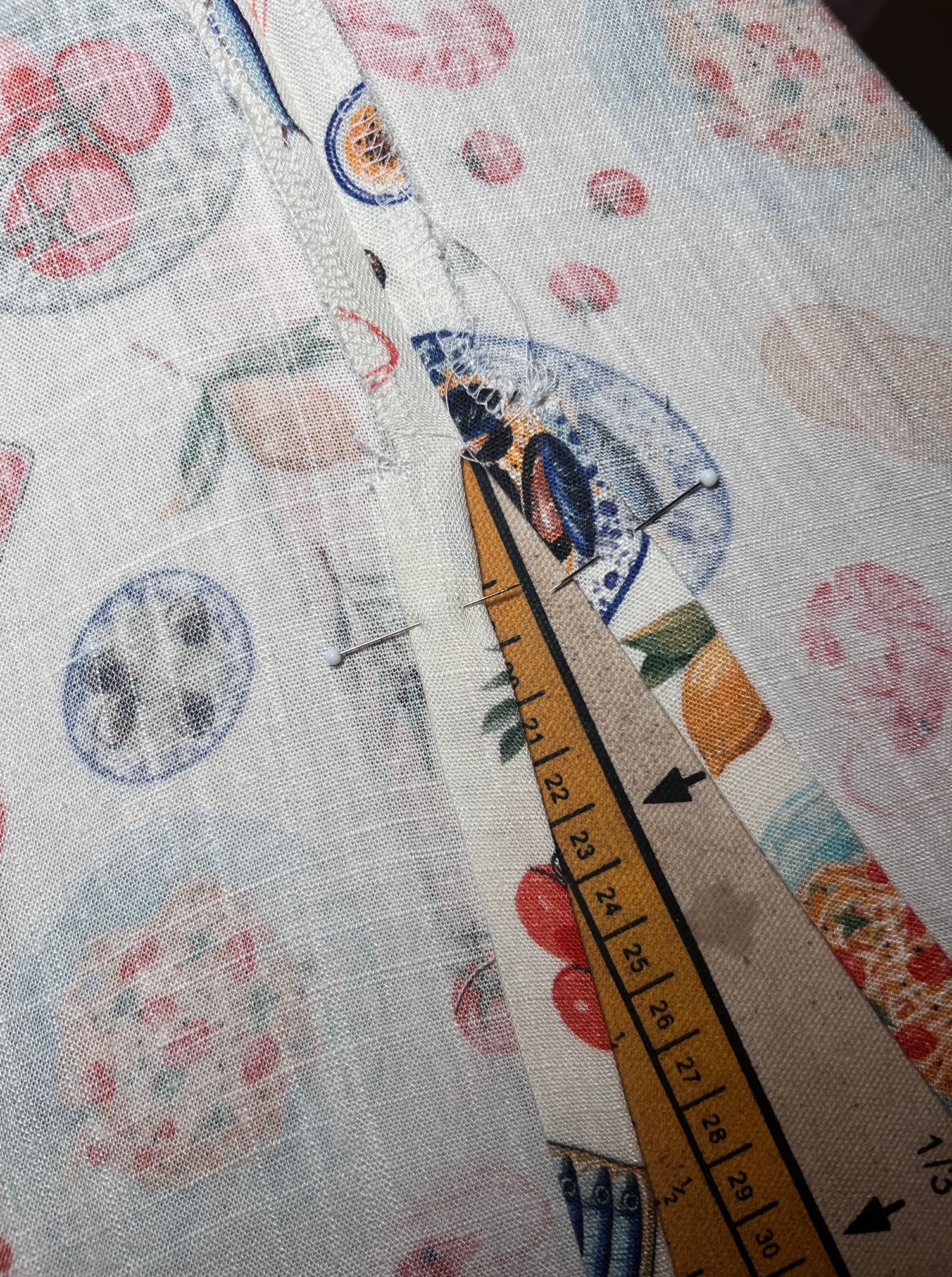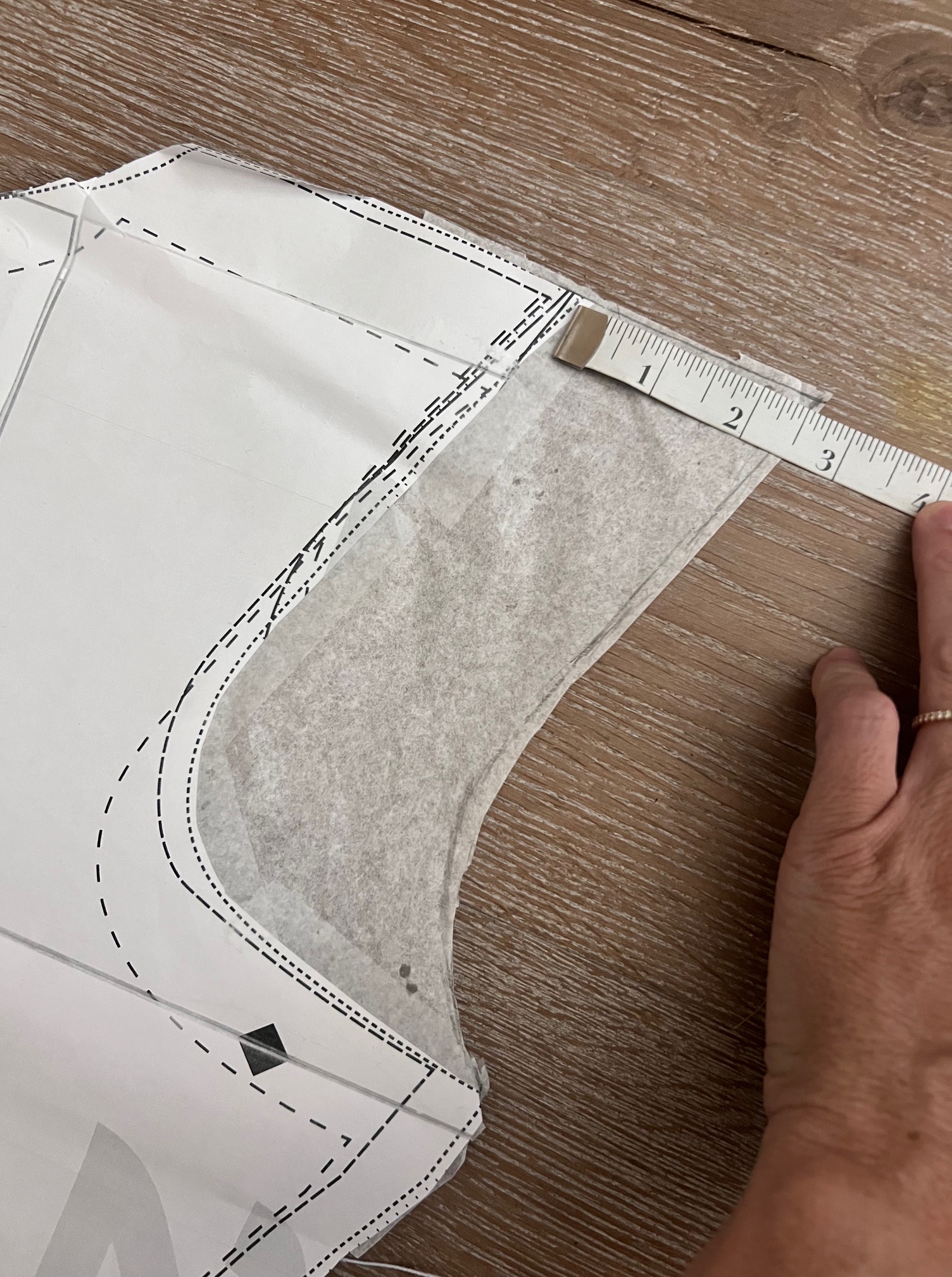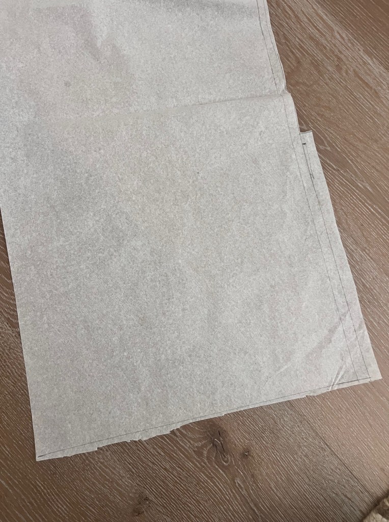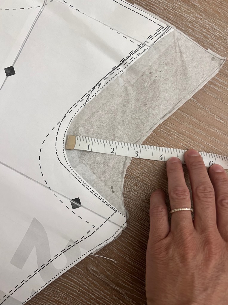 Next, I chopped the pattern off at my natural wait line, and added length. I literally just added a rectangle to the waistline for the skirt, my pattern piece is 36″ long, I’m 5′ 4″ for reference. I knew I wanted to have to side vents, so I added in a side vent to each side to accommodate for hemming the side seams. I measured from my waist to my knee and marked this measurement on the skirt piece. From this point down to the hem I extended the side seam out about 5/8″ to create the side vent.