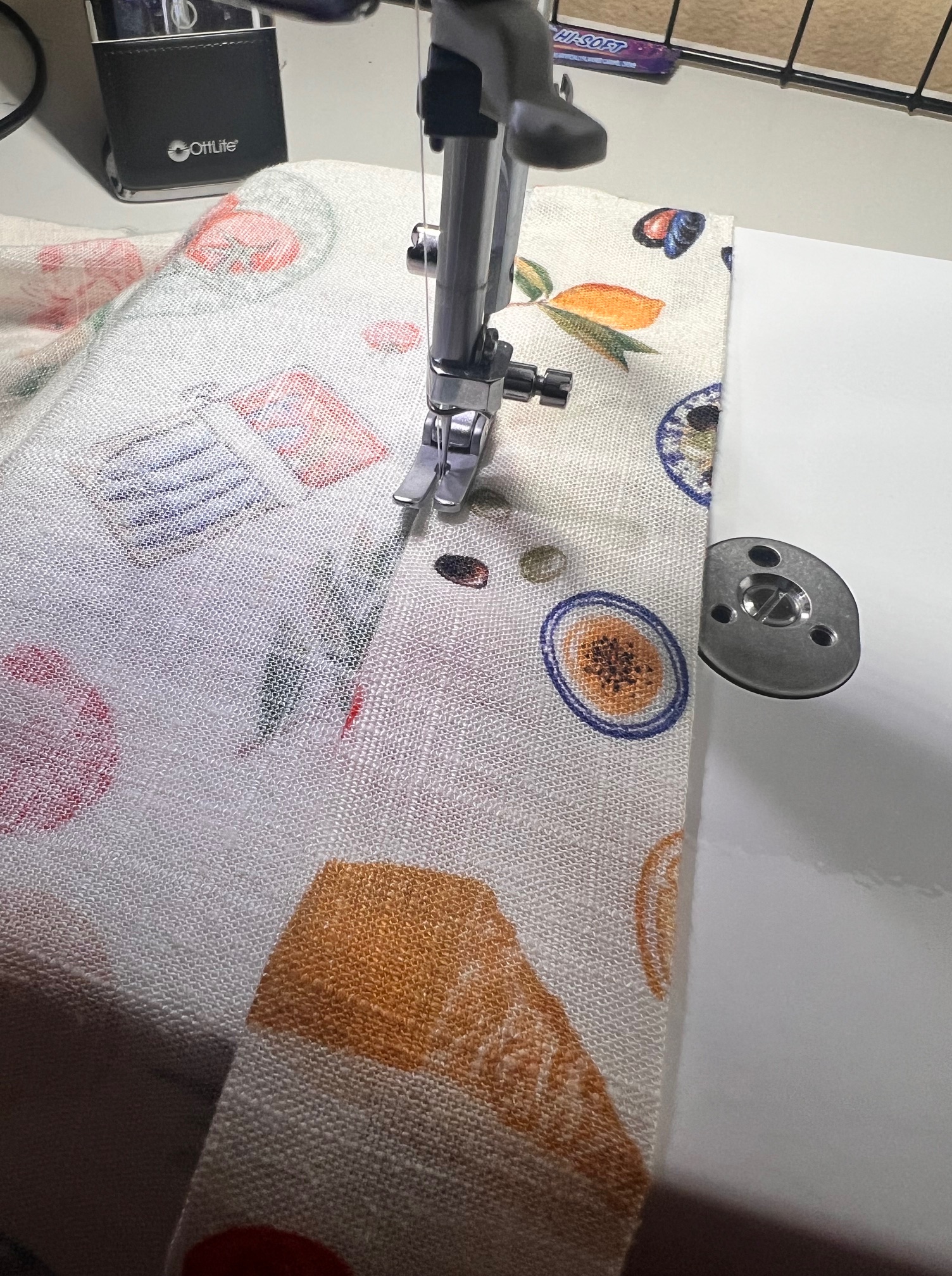 5. At this point I found it helpful to baste the side seam from the under arm to the waist to try it on. I made my front bodice way too tight the first time so I had to unpick most of the rows. The second time I got it just right. The difference is that I kind of bunched up the fabric behind the foot as I was sewing and this made the rows too tight. A video I found mentioned this tip but it didn’t work great for me.