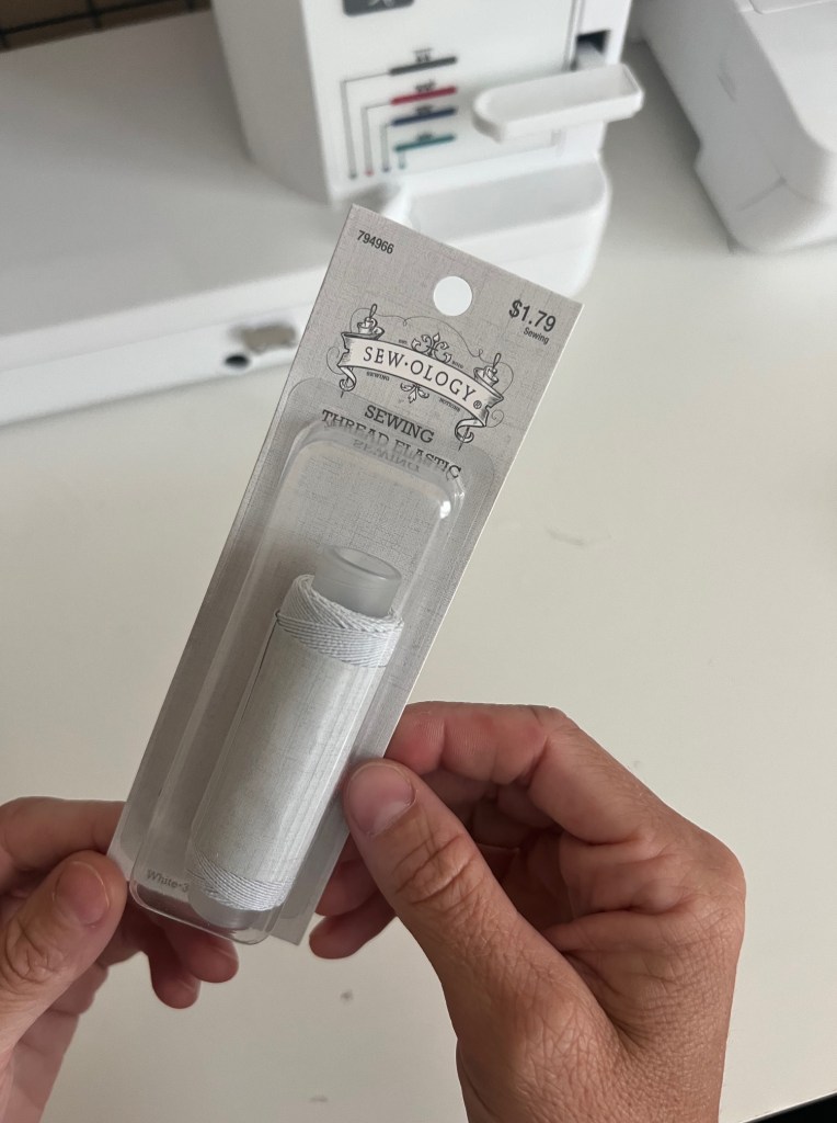 When using elastic thread, you need to wind the bobbin by hand. Next, load the bobbin like normal and pull the threads out in preparation for sewing. Make sure to take a few practice runs to get it just right, the bobbin case may need a little tweaking again. I found the elastic thread from Hobby Lobby was a little thinner and just right. I picked some up from Walmart as well but it was a little thicker and harder to use in my machine.