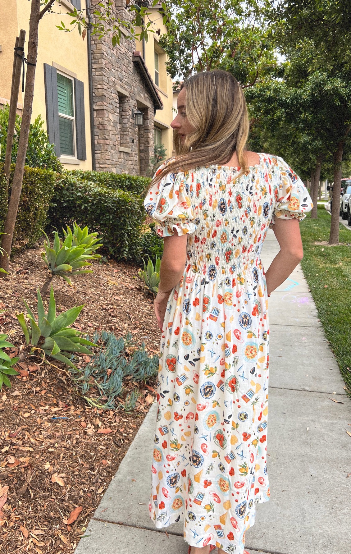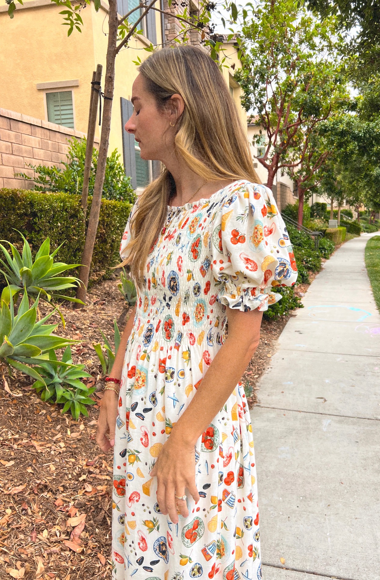 I love the ruching throughout the bodice of the Eva pattern, but I wanted to finish it at my natural waist instead of mid thigh like the pattern is designed for. I also wanted to add sleeves to my version. Here are the edits I made!